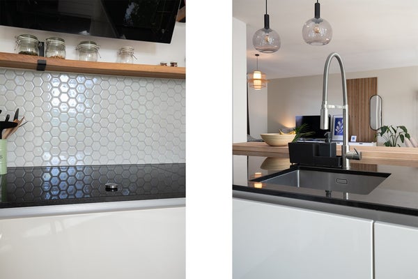 La cocina espaciosa y moderna con isla de cocción está equipada con electrodomésticos como un horno doble, lavavajillas, refrigerador con gran congelador y placa de inducción con extractor. Debido a la barra de desayuno, ¡esta cocina es especialmente agradable para cocinar juntos!