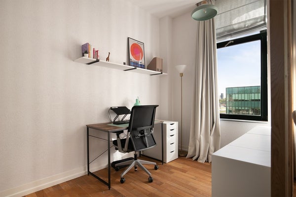 La segunda habitación ubicada en la parte trasera también es de muy buen tamaño y es adecuada como dormitorio u oficina. Esta habitación ofrece suficiente espacio para una cama doble y armario también. Esta habitación puede ser amueblada a solicitud.