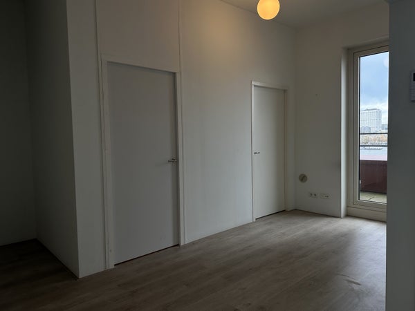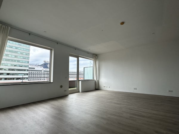Apartamento en alquiler: decorado, en el 5º piso, altos techos, 2 dormitorios, situado en el edificio Montevideo en el Wilhelminapier. Con una vista impresionante sobre el río Maas y el puente, a poca distancia del transporte público y a distancia en bicicleta del centro de la ciudad.