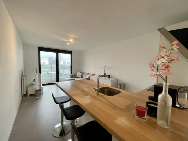 En el noveno piso, en pleno centro de Rotterdam, se encuentra este apartamento amueblado de 2 habitaciones con un amplio y soleado balcón en la parte trasera. La ubicación es ideal: a solo 5 minutos a pie de la Estación Central de Rotterdam, cerca de la estación de metro Beurs y varias conexiones de tranvía y autobús. También la animada calle comercial Koopgoot, el teatro Hofplein y una amplia gama de tiendas y restaurantes están a poca distancia a pie.