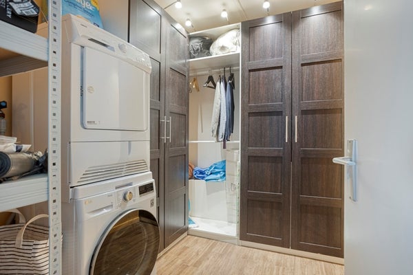 Junto a la cocina hay un amplio trastero. Aquí hay armarios que proporcionan mucho espacio de almacenamiento. También aquí se encuentran la lavadora y la secadora.