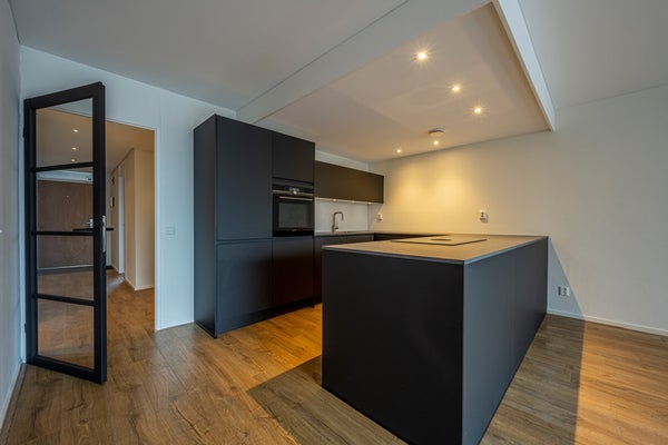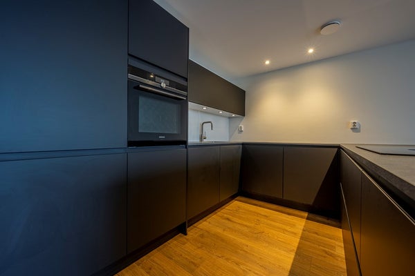 En el corazón del apartamento se encuentra la luminosa sala de estar y comedor con cocina abierta. La cocina es completamente nueva y está totalmente equipada, incluyendo un gran refrigerador con congelador separado, placa de inducción con extracción integrada, lavavajillas, fregadero y una combinación de horno-microondas. También hay mucho espacio de almacenamiento, perfecto para quienes disfrutan cocinar y quieren tener todo a mano.