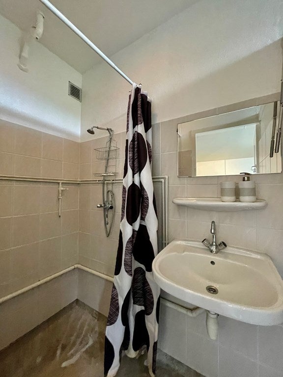 A través de la cocina también se puede acceder al baño alicatado, dotado de ducha a ras de suelo y mueble lavabo con espejo.