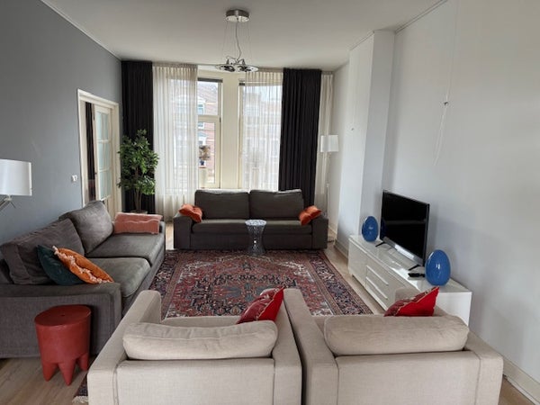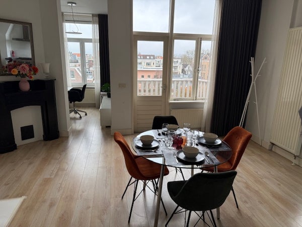 EN ALQUILER: Apartamento totalmente amueblado de 4 habitaciones/2 dormitorios para estancias cortas, situado en el centro entre la Avenida Concordia y Hoflaan en Kralingen-Rotterdam. El apartamento está ubicado en el 2º y 3º piso y también cuenta con una agradable terraza en la azotea para disfrutar del sol. Kralingen es conocida por jóvenes y mayores como un vecindario internacional de moda lleno de vida. Está a una distancia muy conveniente de la Universidad de Erasmus y a unos 10 minutos en bicicleta del centro de Rotterdam. Hay varias calles comerciales encantadoras con tiendas de delicatessen, supermercados, boutiques, cafés y restaurantes. En resumen, un lugar encantador para vivir.