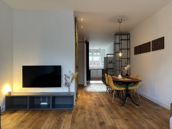 La propiedad fue construida en 1924 y, por lo tanto, tiene el carácter de un edificio más antiguo. Esto puede manifestarse en pequeñas irregularidades, como una ligera inclinación o detalles auténticos que pertenecen al período de construcción. El suelo de madera ha sido recientemente lijado y vuelto a lacar, dándole una apariencia cuidada. En resumen: una propiedad encantadora donde se aplica el dicho "lo que ves es lo que obtienes."