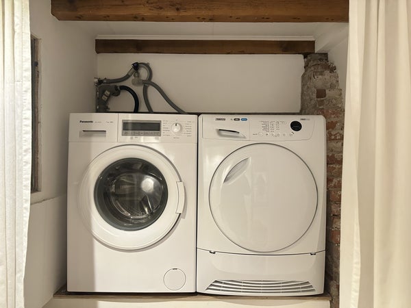 También hay una lavadora y secadora, así como un aseo separado, un trastero y mucho espacio de almacenamiento empotrado.