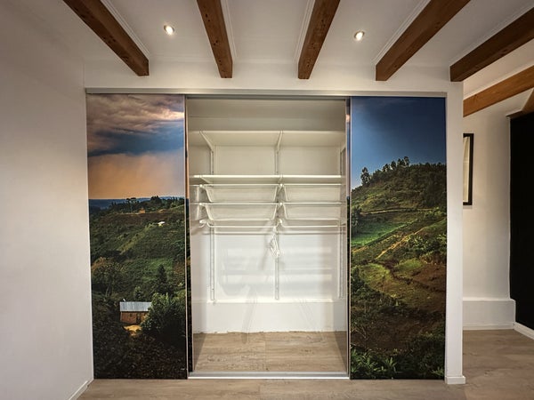 También hay un amplio trastero, oculto detrás de las características puertas de madera.