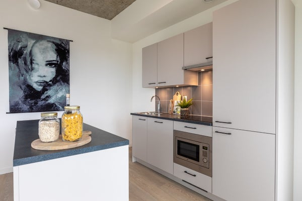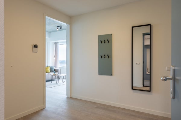 Entras al apartamento a través de un pasillo compacto que da acceso a todas las habitaciones. La sala de estar cuenta con una cocina abierta totalmente equipada con todos los electrodomésticos necesarios. Desde el pasillo, también accedes al baño moderno, que cuenta con una ducha, lavabo con espejo y inodoro. Además, el apartamento tiene un dormitorio espacioso.