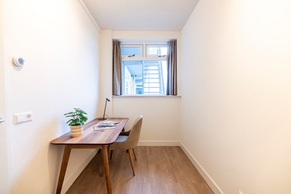 Este apartamento de dos habitaciones completamente amueblado se encuentra a poca distancia de la Estación Central de Rotterdam. Un hogar cómodo en una ubicación privilegiada, perfecto para cualquiera que busque vivir y trabajar en la ciudad durante un período prolongado.