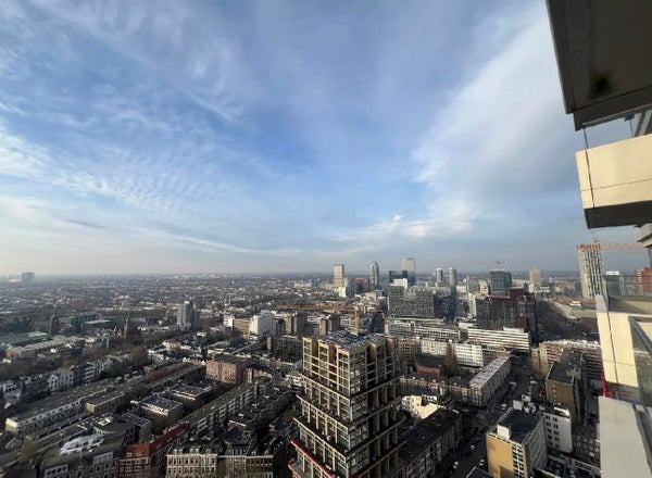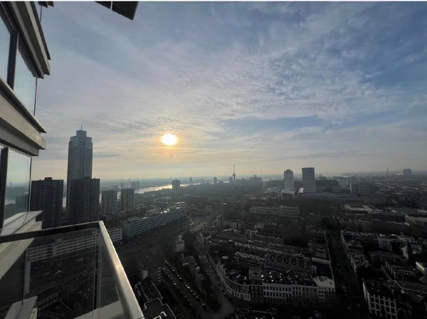 Un apartamento de alta gama de 3 habitaciones de aproximadamente 69 m², ubicado en el 34.º piso de la CoolTower con 2 balcones, ofrece una impresionante vista de la línea del horizonte de Rotterdam, el centro de Rotterdam y sus alrededores.