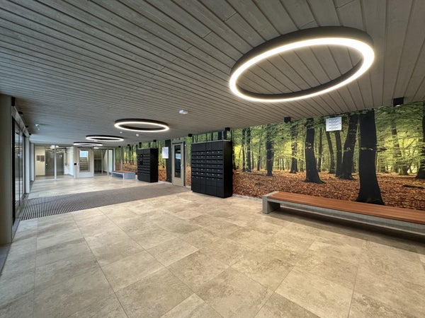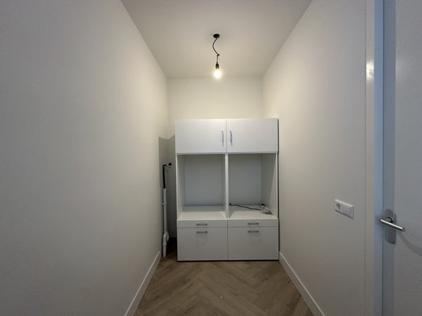 Planta bajaEntrada a través del vestíbulo compartido con intercomunicador, ascensor y acceso al patio, al garaje y al depósito de bicicletas.3ª plantaEntrada a la propiedad a través del vestíbulo, con acceso a un lavadero separado y un baño separado en la parte delantera. La propiedad está completamente equipada con un suelo de PVC de alta calidad en espiga, que proporciona un aspecto moderno y cálido. La sala de estar amplia y luminosa cuenta con grandes ventanas y limita con una elegante cocina abierta en acabado oscuro con encimera de tipo mármol. Esta cocina está equipada con electrodomésticos de lujo, incluidos cocina de inducción, campana extractora, lavavajillas, horno, microondas, refrigerador, congelador y un armario para vinos. Desde la cocina se accede a un almacén separado y escondido, ideal como espacio de almacenamiento adicional o despensa. Tanto la sala de estar como las dos habitaciones ofrecen acceso directo al amplio balcón con vistas al verde. El dormitorio principal cuenta con un armario empotrado y un lujoso baño en suite con amplia ducha a ras de suelo, mueble de lavabo moderno y inodoro. La segunda habitación es ideal como habitación de huéspedes o de trabajo.