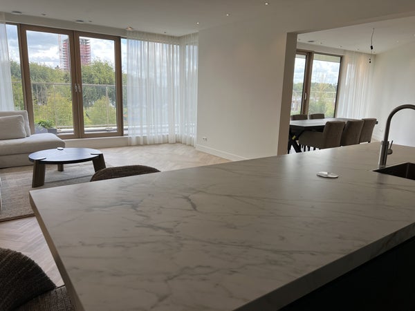 ¡Nancy Zeelenbergsingel! Este luminoso y amueblado apartamento de 3 habitaciones de 134 m² se encuentra en el 3er piso de este hermoso complejo de nueva construcción. La propiedad está situada en una ubicación tranquila y verde y cuenta con una etiqueta energética A++, un amplio balcón que abarca todo el ancho de la propiedad y nada menos que dos espacios de estacionamiento privados cerrados.