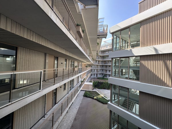 La ubicación en las afueras de la ciudad ofrece hermosas vistas sobre el verde y el agua, con acceso directo a caminos peatonales y ciclistas. En las cercanías hay varias comodidades como supermercados, escuelas, centros de salud y lugares de comida. Con paradas de tranvía y metro a poca distancia y un rápido acceso a la A20 y la A16, la accesibilidad tanto en coche como en transporte público está muy bien organizada. Además, hay suficiente espacio de estacionamiento y este apartamento cuenta con dos espacios de estacionamiento privados.