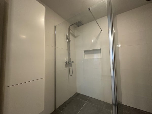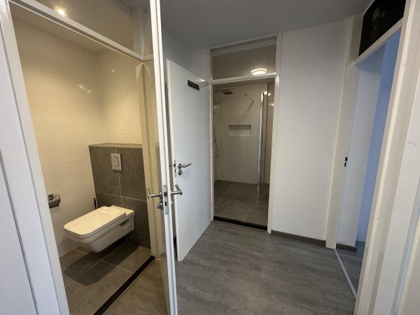 Entrada, despensa interior con espacio para la ventilación mecánica, lavadora y caldera. Desde el vestíbulo, tienes acceso a todas las habitaciones. Un aseo elegantemente terminado con azulejos de lujo, un moderno inodoro suspendido y un lavabo.