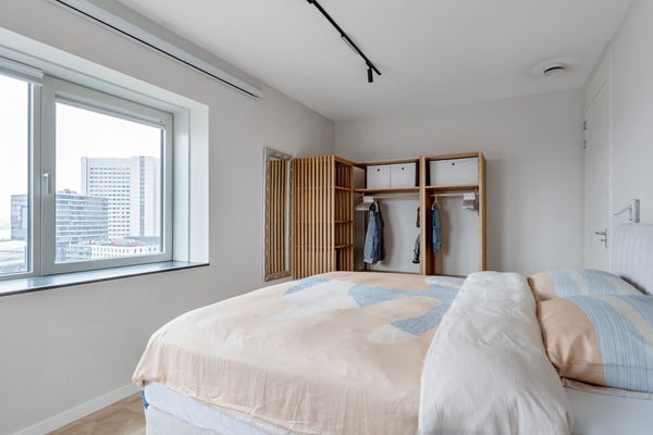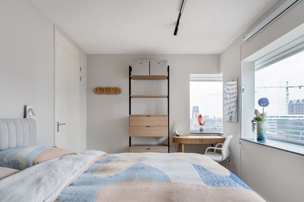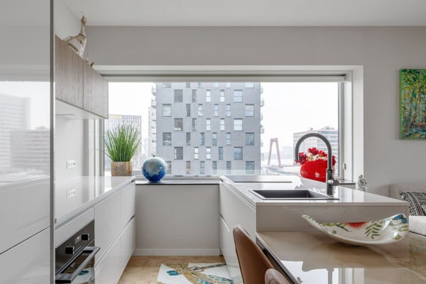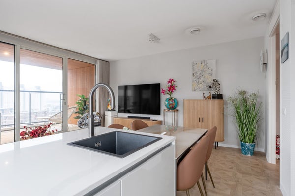 Apartamento de 2 habitaciones elegante y cómodo en la Posthoornstraat. El apartamento se encuentra en el moderno edificio 100HOOG en el 12º piso. La propiedad cuenta con una superficie habitable de aproximadamente 70 m², un amplio balcón de aproximadamente 11 m², un trastero externo de aproximadamente 6 m² y está equipada con calefacción por suelo radiante y refrigeración por suelo en todo el apartamento. Gracias a la etiqueta energética A, aquí vivirás de manera eficiente y cómoda. La Posthoornstraat en Rotterdam es una parte central y dinámica de la ciudad. Desde esta ubicación, el centro, el transporte público, tiendas y restaurantes son fácilmente accesibles. El edificio cuenta con su propio aparcamiento; la plaza de aparcamiento se encuentra en el 1er piso del complejo.