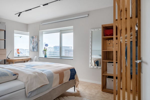 El dormitorio está amueblado con un colchón box spring de 180 x 200 y dispone de un televisor proyector de 100 pulgadas. El baño está decorado de manera moderna y cuenta con una ducha a ras de suelo, bañera, lavabo y un mueble de lavabo. Hay un aseo separado. Además, el apartamento cuenta con un trastero interno con lavadora y secadora. El trastero externo se encuentra en otra parte del edificio.