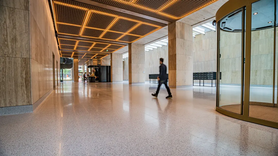 Panel de telefonía, casillas de correo, ascensor al primer piso.