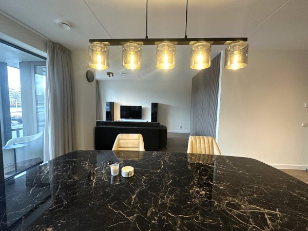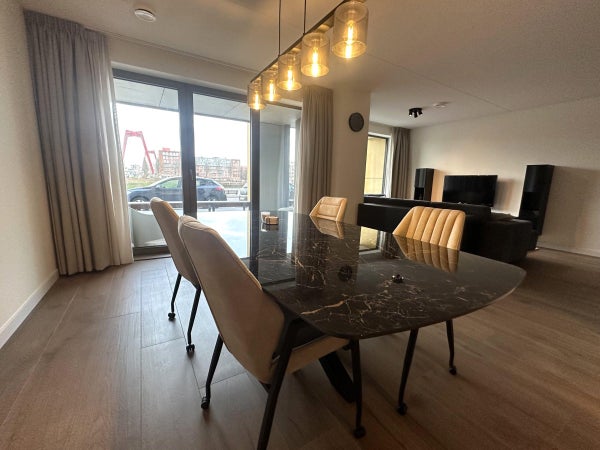 La cocina abierta cuenta con los electrodomésticos empotrados más modernos, prestando atención a cada detalle, y la propiedad está equipada con los mejores materiales y comodidades; y desde la espaciosa sala de estar, hay una vista impresionante sobre el agua y la línea de horizonte de Rotterdam.