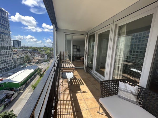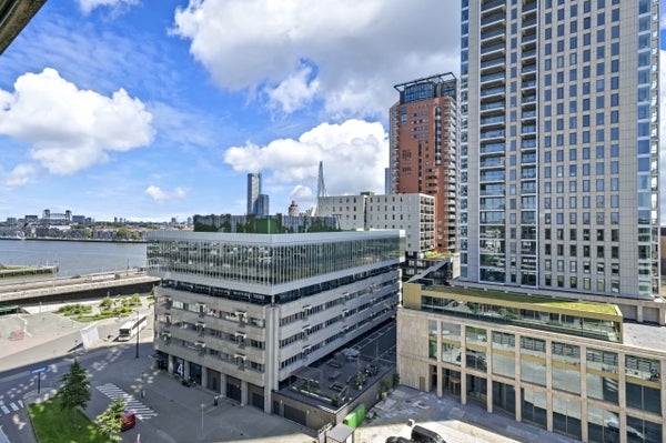 Moderno, completamente amueblado apartamento de 3 habitaciones en el 10º piso (con uso opcional de un espacio de estacionamiento seguro) en el centro de Róterdam, junto al Mosa y el famoso "Puente Erasmus". A poca distancia de restaurantes elegantes y locales, tiendas, museos, el "Teatro Luxor" y el centro de la ciudad. Las líneas de tranvía 7, 8, 23 y 25 llegan a la Estación Central. La estación de metro 'Leuvenhaven', que está a poca distancia, ofrece una conexión directa con La Haya Central.