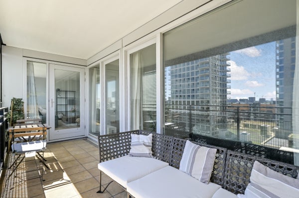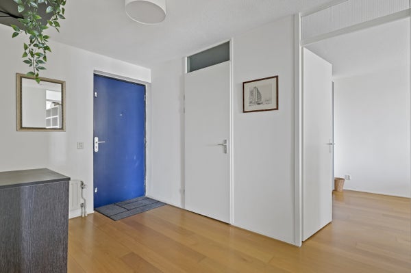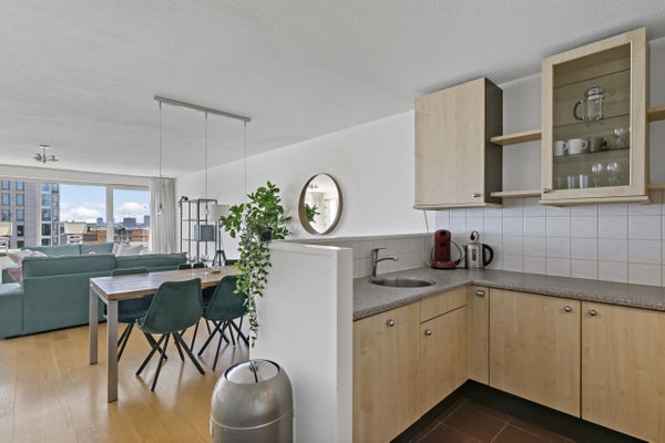 Distribución: Entrada común segura en la planta baja con intercomunicador, buzones y acceso a un amplio espacio de almacenamiento. 10º piso. El amplio pasillo da acceso a todas las habitaciones, incluido el baño con inodoro recién instalado. La sala de estar moderna tiene un suelo de laminado y da al Puente Erasmus. La sala de estar también da acceso al balcón orientado al sur. La cocina abierta está equipada con muchos electrodomésticos nuevos, incluyendo un lavavajillas integrado, microondas/horno, frigorífico y 4 placas de cocción eléctricas. Hay un lavadero separado con lavadora y congelador. El dormitorio más grande tiene un armario empotrado y da acceso al balcón. La segunda habitación está actualmente configurada como oficina, pero también se puede configurar como segunda habitación. El baño recién renovado cuenta con bañera, ducha separada, lavabo con espejo y espacio de almacenamiento.*en el sótano hay una plaza de aparcamiento cerrada en alquiler por 150,00 €.