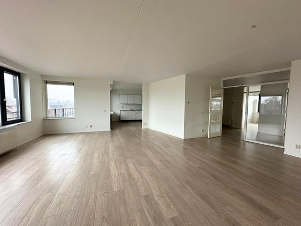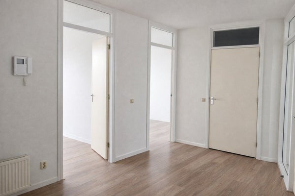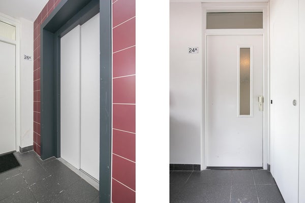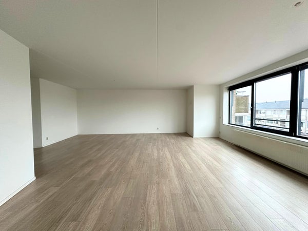 A través de la entrada central en la planta baja con buzones y ascensor, accedes al apartamento. Un amplio pasillo da acceso a todas las estancias. La luminosa y espaciosa sala de estar en la parte delantera ofrece vistas a la animada calle comercial y hacia el área de bosque y dunas. Adyacente se encuentra la cocina abierta con un cuarto de servicio, equipada con varios electrodomésticos empotrados. Desde la cocina se accede al balcón orientado al oeste, perfecto para disfrutar del sol de la tarde.