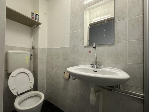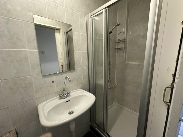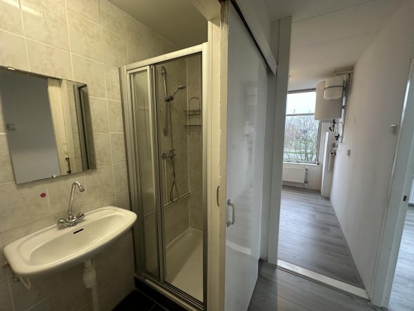 Entrada, pasillo con acceso al baño; equipado con una ducha separada, lavabo y aseo.