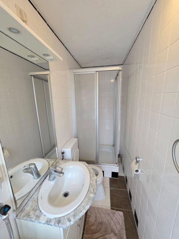 -Baño, completamente alicatado y equipado con ducha, lavabo y inodoro