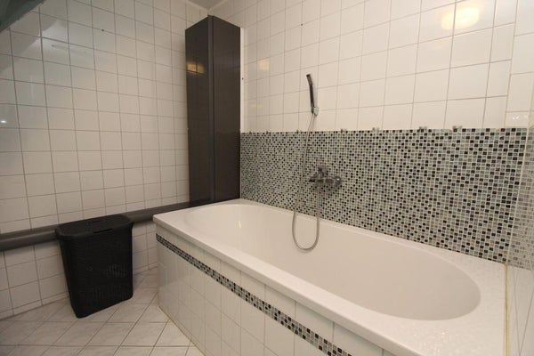 A través de la entrada general, se llega a la entrada de la vivienda. Desde el pasillo, tienes acceso a la muy espaciosa sala de estar con cocina abierta equipada con los electrodomésticos necesarios. La sala de estar hace una esquina hacia una acogedora zona de estar. Aquí puedes relajarte en el sofá y ver la televisión.