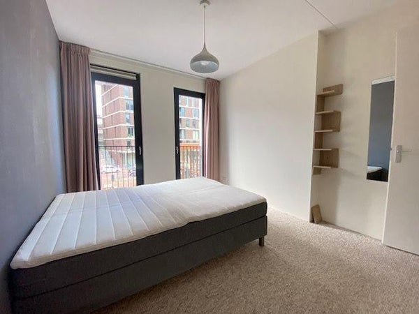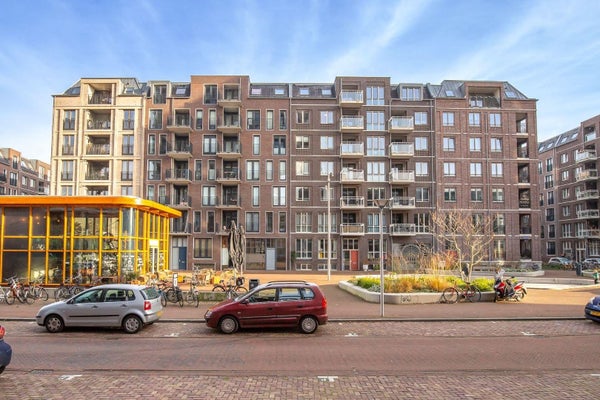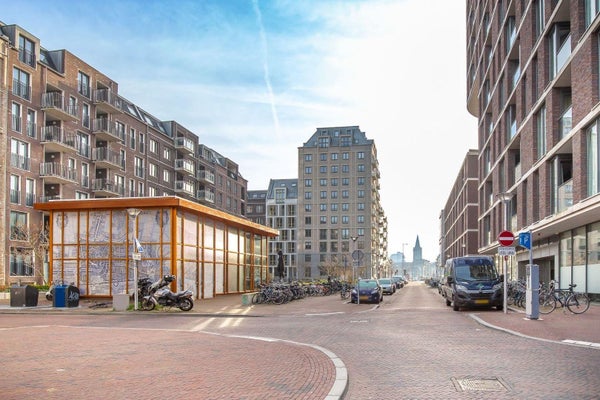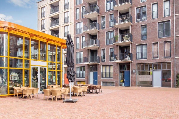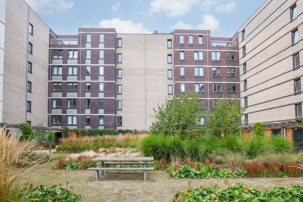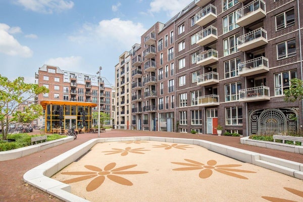 El barrio de Zijdebalen muestra una imagen arquitectónica de alta calidad. Los hermosamente diseñados techos y la gran diversidad en el trabajo de ladrillos dan carácter a las calles. En el corazón del bloque de viviendas se encuentra el gran jardín interior de Zijdebalen. El jardín comunitario es accesible solo para los residentes. Este impresionante apartamento de 3 habitaciones en el segundo piso está bien distribuido y se siente espacioso gracias a las numerosas ventanas. Toma el ascensor o las escaleras desde la amplia entrada central y sal al vestíbulo. El apartamento tiene un agradable espacio habitable con cocina moderna y abierta, dos habitaciones de tamaño completo y ventanales de piso a techo. En el amplio balcón (6 m²), es un placer sentarse al sol y disfrutar de la bellamente ajardinada plaza.