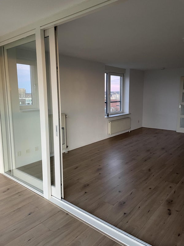 Este apartamento está disponible para alquilar a partir del 1 de enero de 2026, ubicado en una excelente zona. En el sexto piso, puedes disfrutar de una hermosa vista sobre el Maas desde tu jardín de invierno. El amplio vestíbulo ofrece espacio para un armario y conduce a la amplia sala de estar, donde grandes ventanas permiten la entrada de abundante luz natural. Una puerta corredera de cristal da acceso al jardín de invierno. La cocina abierta se está renovando y hay un cuarto de almacenamiento separado con conexiones para electrodomésticos. El apartamento cuenta con dos dormitorios y un baño con bañera, ducha, lavabo y inodoro, así como un inodoro separado. La renta es de 1.389,00 € al mes, excluyendo servicios, con un lugar de aparcamiento por 103,35 € al mes. Ubicado cerca del vibrante centro de Venlo, tienes acceso a la naturaleza y a instituciones culturales. Se aplican requisitos de ingresos.