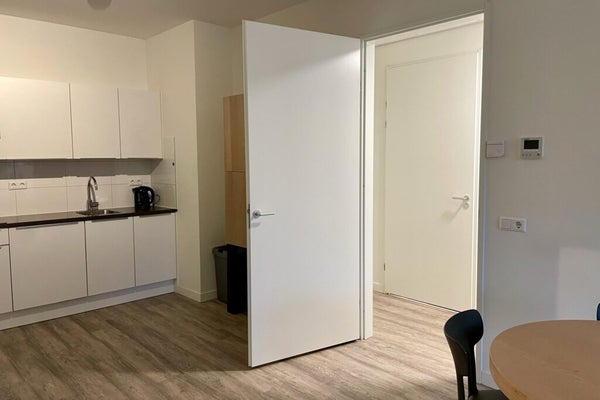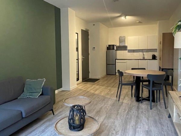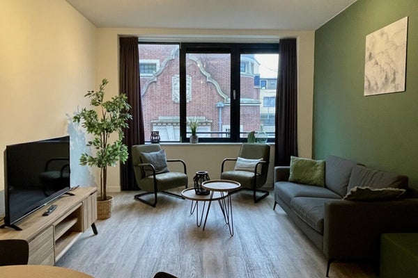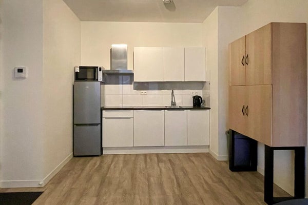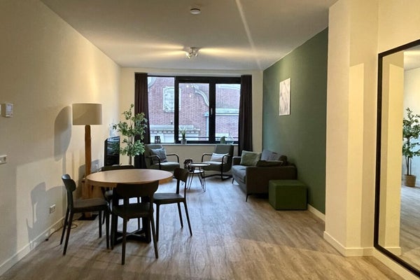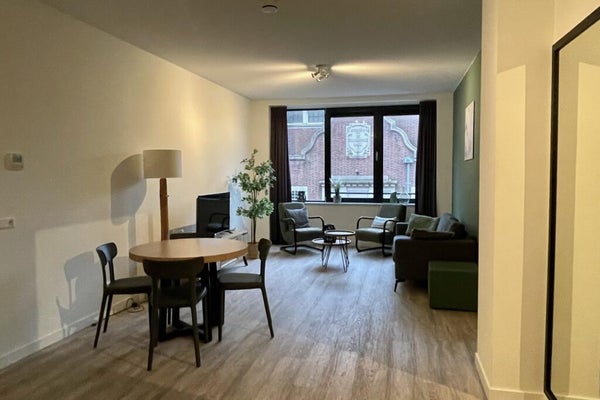 Welcome to this furnished apartment at Heul 32 in Alkmaar, perfect for anyone seeking a centrally located living space. Situated on the first floor of a building constructed in 2019, the 62 m² apartment features a cozy living room with open kitchen, a bedroom, and a bathroom with walk-in shower. The modern kitchen includes an electric stove, extractor hood, dishwasher, combi oven, and fridge-freezer. It is fully furnished and decorated, with a separate toilet and storage space that houses a heat pump, washing machine, and dryer. There are shared bike storage areas, and the rooftop terrace is great for relaxation. The total rent is € 1,560.14 per month, and the apartment is available immediately for a minimum of 18 months. Pets and smoking are not allowed.