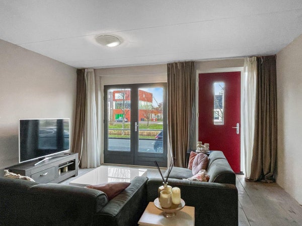 Almere city center is easily accessible by both car and public transport. The bus stop is directly opposite the apartment, providing a quick connection to Almere Poort train station. Major roads and recreational facilities are just a few minutes away.