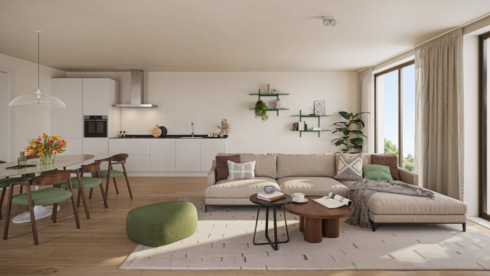 This apartment is available for € 1,275 per month, with service costs of € 70. It has an A++ energy label and includes a parking space. Located in a quiet, green residential area, all essential amenities such as supermarkets, shops, schools, and sports facilities are nearby. You will find various walking and cycling routes, and public transport is easily accessible. Excellent connections to the city center and surrounding towns, along with nearby highways, make this location appealing for both professionals and starters. The apartment will be available from June 1.