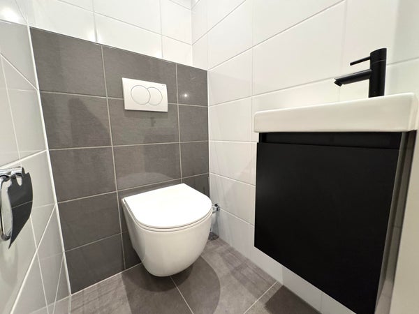 The property offers two bedrooms. The bathroom is modernly finished and equipped with a shower and washbasin. The outdoor space provides a pleasant extension of the living area.