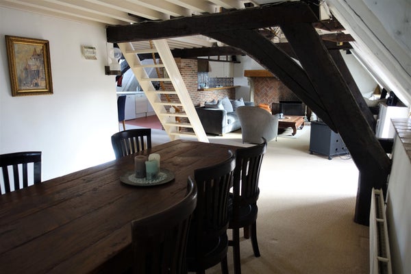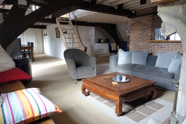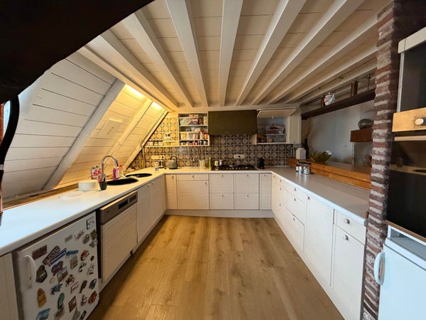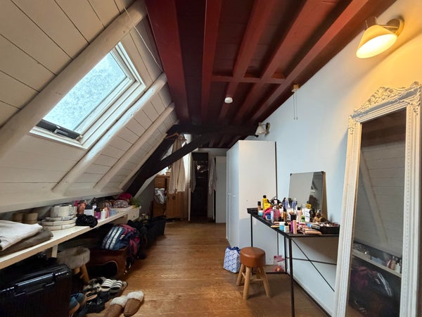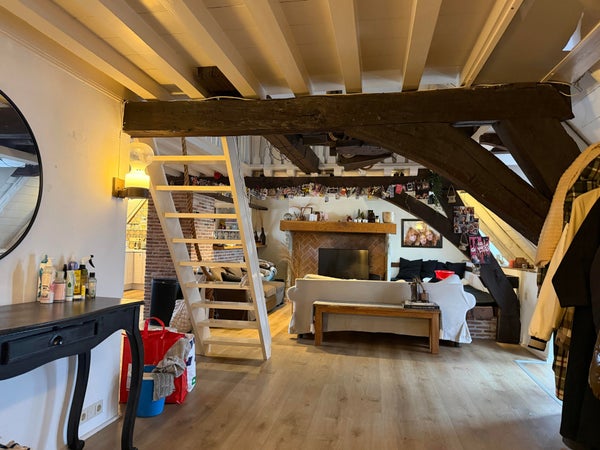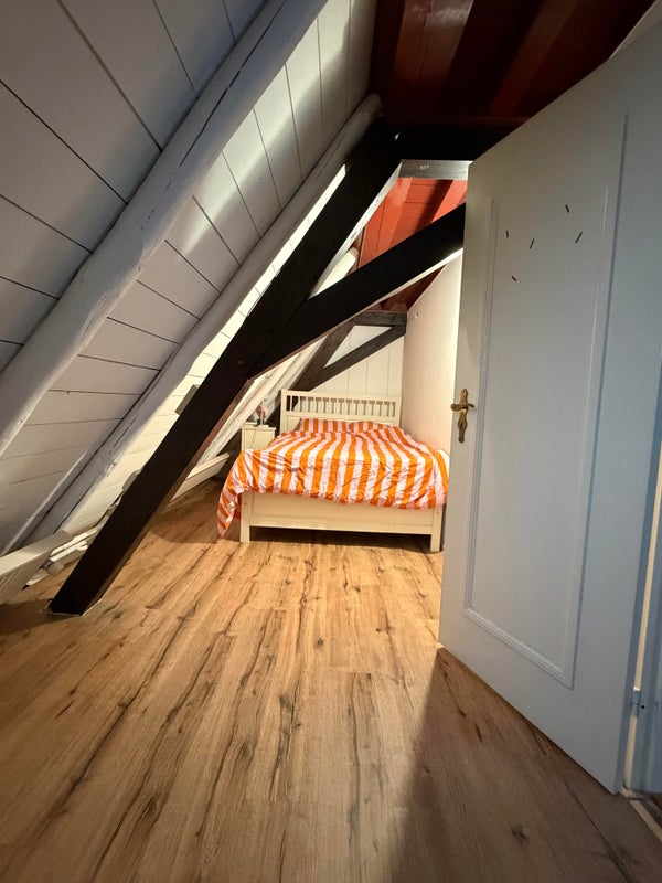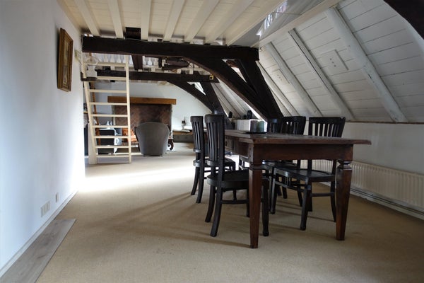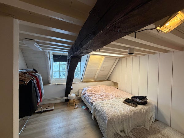 This characteristic 4-room upstairs apartment is located on the 3rd and 4th floors in a truly beautiful location in a splendid monumental building in the historic city center of Amersfoort. The city center is filled with nice shops, good restaurants, and lovely terraces. The train station is just a 5-minute bike ride away, as are many amenities.