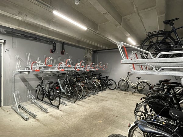 In addition, the complex offers various facilities, including a communal gym, a bicycle storage area, and a parking garage for your car.
