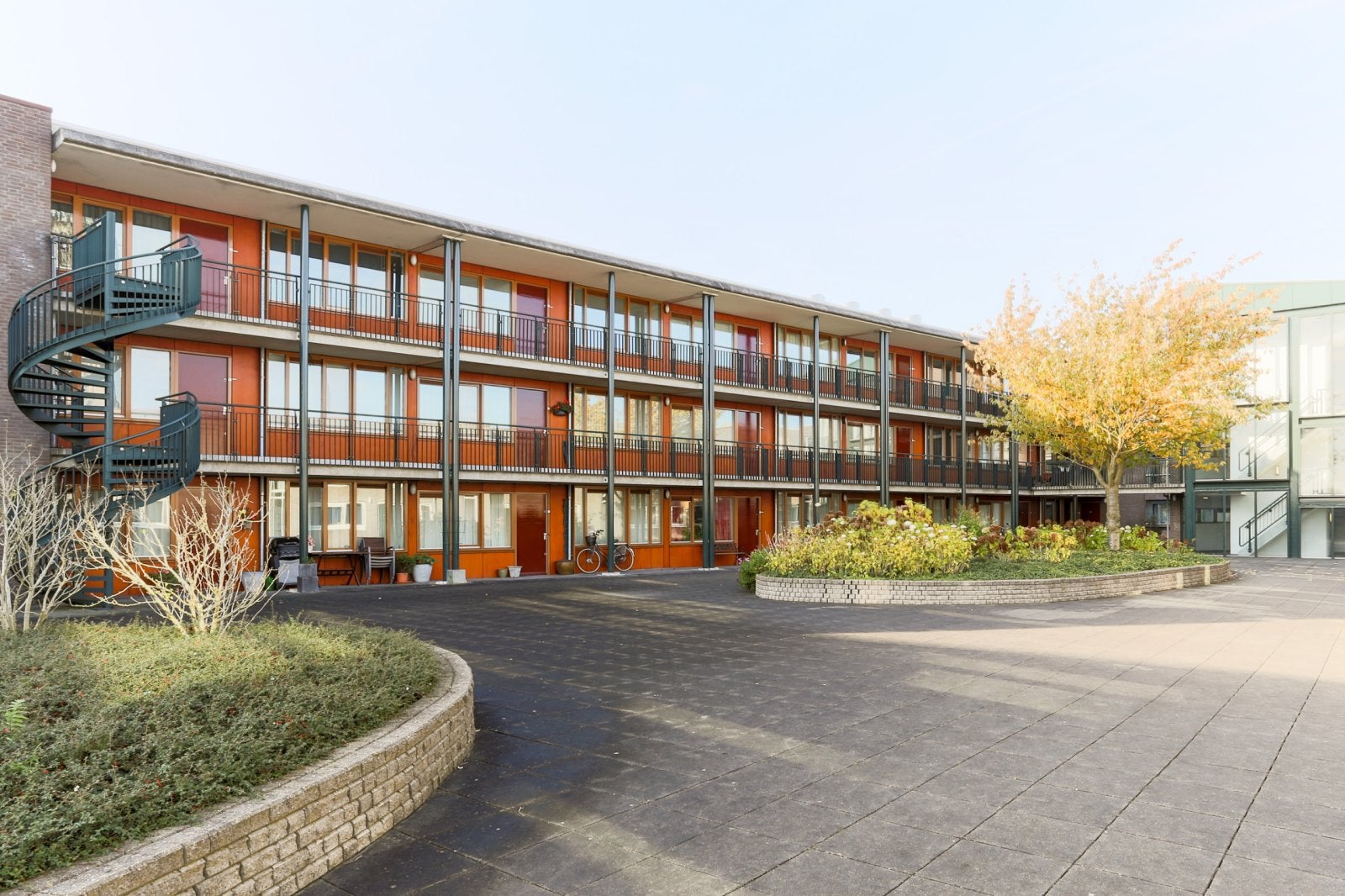 Living in the modern apartment complex on Sint Jorisstraat in Amersfoort places you in the heart of the vibrant city center, right by the Sint Jorisplein shopping center. Here, you're surrounded by various shops and cozy eateries. The historical city center is just a short walk away, and you can reach the central train and bus station in under 15 minutes. Built in 2000, these apartments vary in size from 75 to 125 square meters, with most having two bedrooms. Each apartment features a fully equipped kitchen and bathroom, while the living room and bedrooms are delivered empty for your personal touch. Each unit also includes a separate storage space. Additionally, there is a terrace, balcony, or loggia, with maisonettes offering a playful layout, featuring bedrooms and a bathroom below, and a spacious living area above.