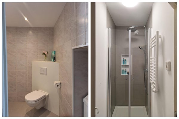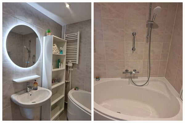 *Bathroom 1* - Recently renovated. Bathtub, douche, sink, vanity unit, toilet, fog-free mirror, towel radiator. Washing machine included.
