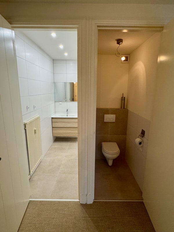 Upon entering, you arrive in the central hallway, which provides access to all rooms. The generous living room and dining area together form a bright and comfortable living space with a practical layout. From the dining area, there is access to the balcony of 7 m², offering a quiet place to sit outside.
