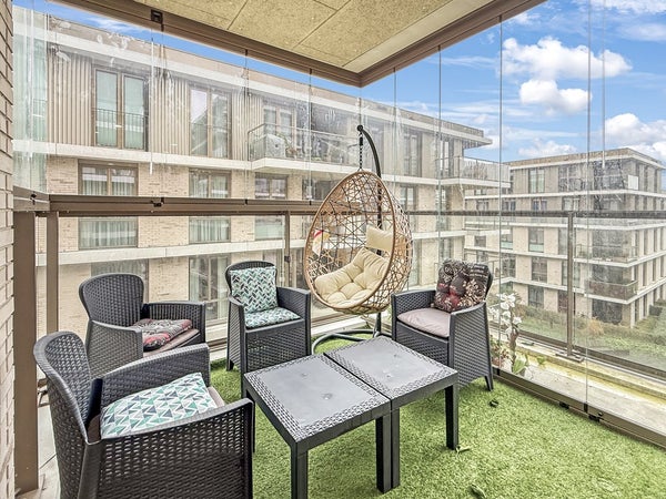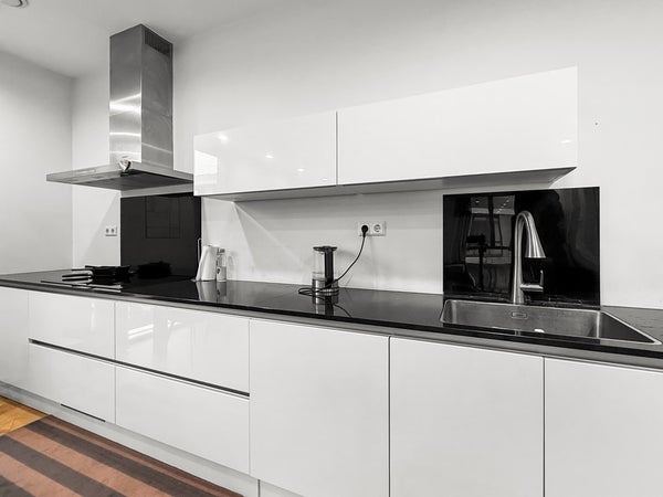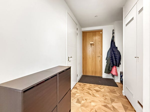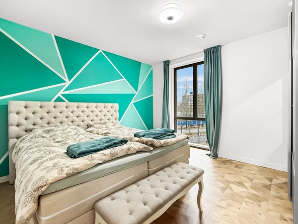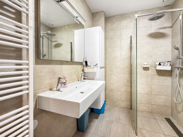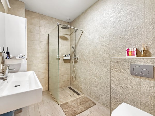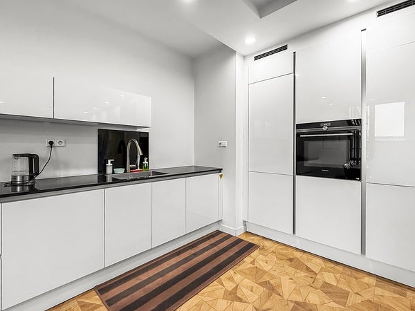 Entrance with a wardrobe and access to all rooms. Spacious and bright living room with an open-plan kitchen and corner layout. Three (!) bedrooms, master bedroom with a closet. Spacious bathroom with a shower, toilet, double sink, and heated towel rail. Separate toilet and storage for the washer/dryer. Balcony overlooking the peaceful courtyard garden.