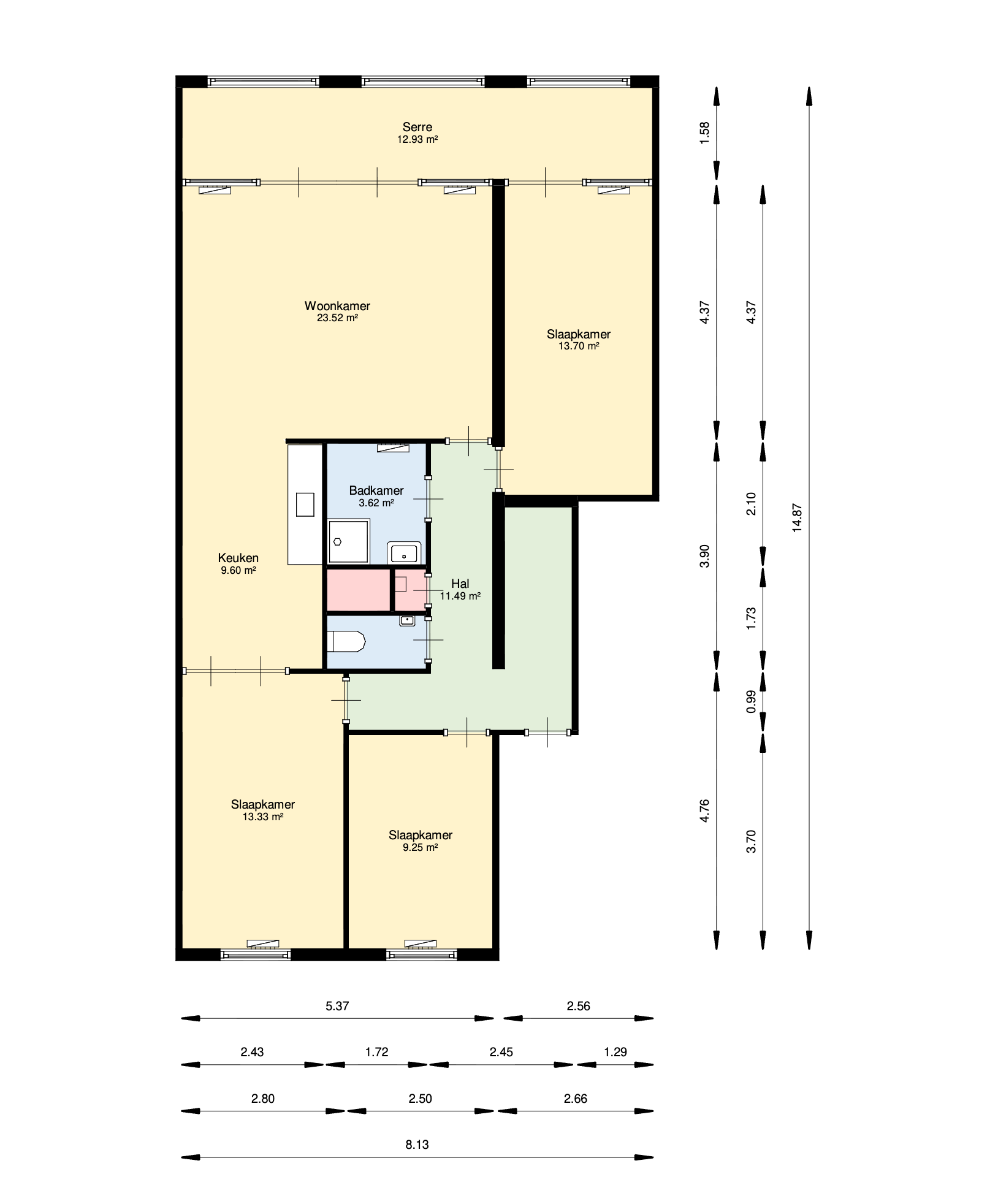 This spacious apartment with three bedrooms is located on the quiet KNSM island. On the fourth floor, you enter the home through the hall, where the living room with a semi-open kitchen welcomes you. At the back, there's an enclosed balcony. The bathroom is equipped with a shower and sink, and there's a separate toilet with a small sink. This apartment offers 90 m² of living space, with a total volume of 270 m³ and an external storage space of 4 m². It's easily accessible by car and by bike to Central Station. Amenities like TV cable are available, and the home is offered 'as is' for a rental price of €2,100 per month with a deposit of €1,500. No students allowed, maximum two adults can live here, and it's exclusive of gas, water, and electricity.