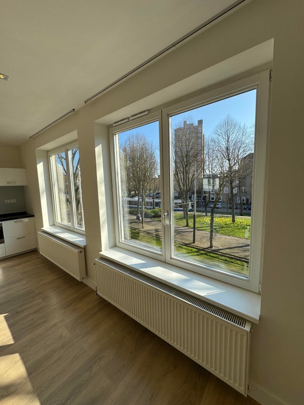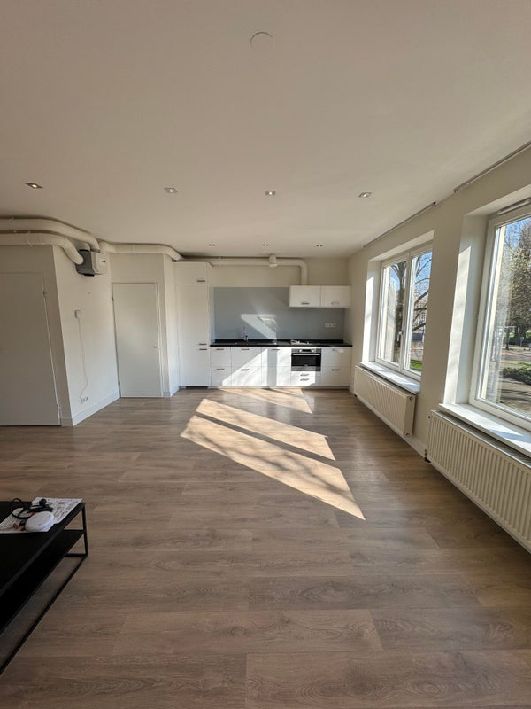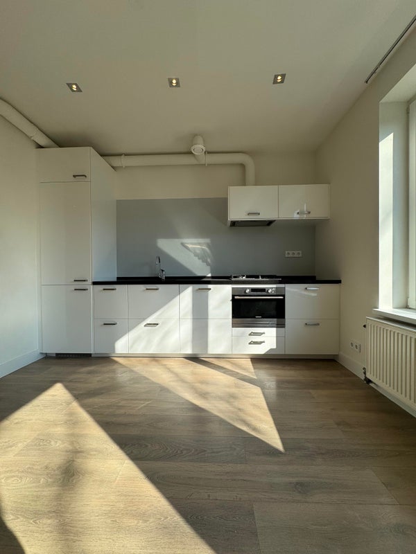 Beautiful and bright three-room apartment with two bedrooms of approximately 56m2 on the second floor. The house has been renovated and has a luxurious open kitchen with combination microwave, dishwasher, stove, extractor hood and fridge/freezer combination. In the central heating cupboard there is a connection for a washing machine and dryer. There are built-in spotlights throughout the living room. The bathroom has a bath with shower and a towel radiator. There is a separate toilet.