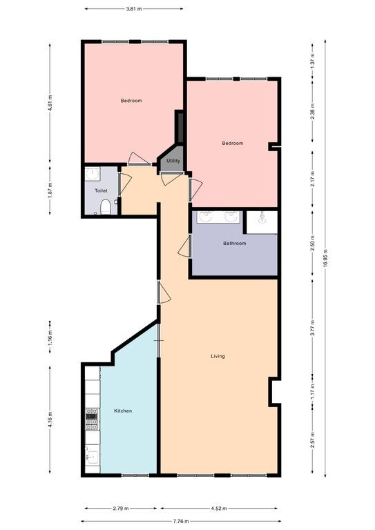 - 2 bedrooms