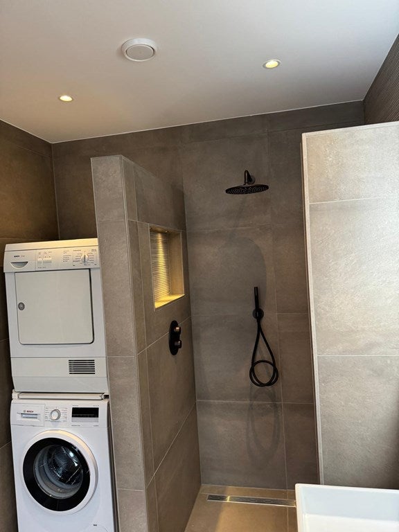The apartment measures approx. 76 m² and is located on the first floor of a characteristic late-19th-century building (built 1899). The layout is comfortable and well balanced, featuring a bright living area with open kitchen of approximately 38 m², a spacious bedroom of nearly 20 m², and a large bathroom equipped with bathtub, walk-in shower and washbasin. A separate toilet is located in the hallway.