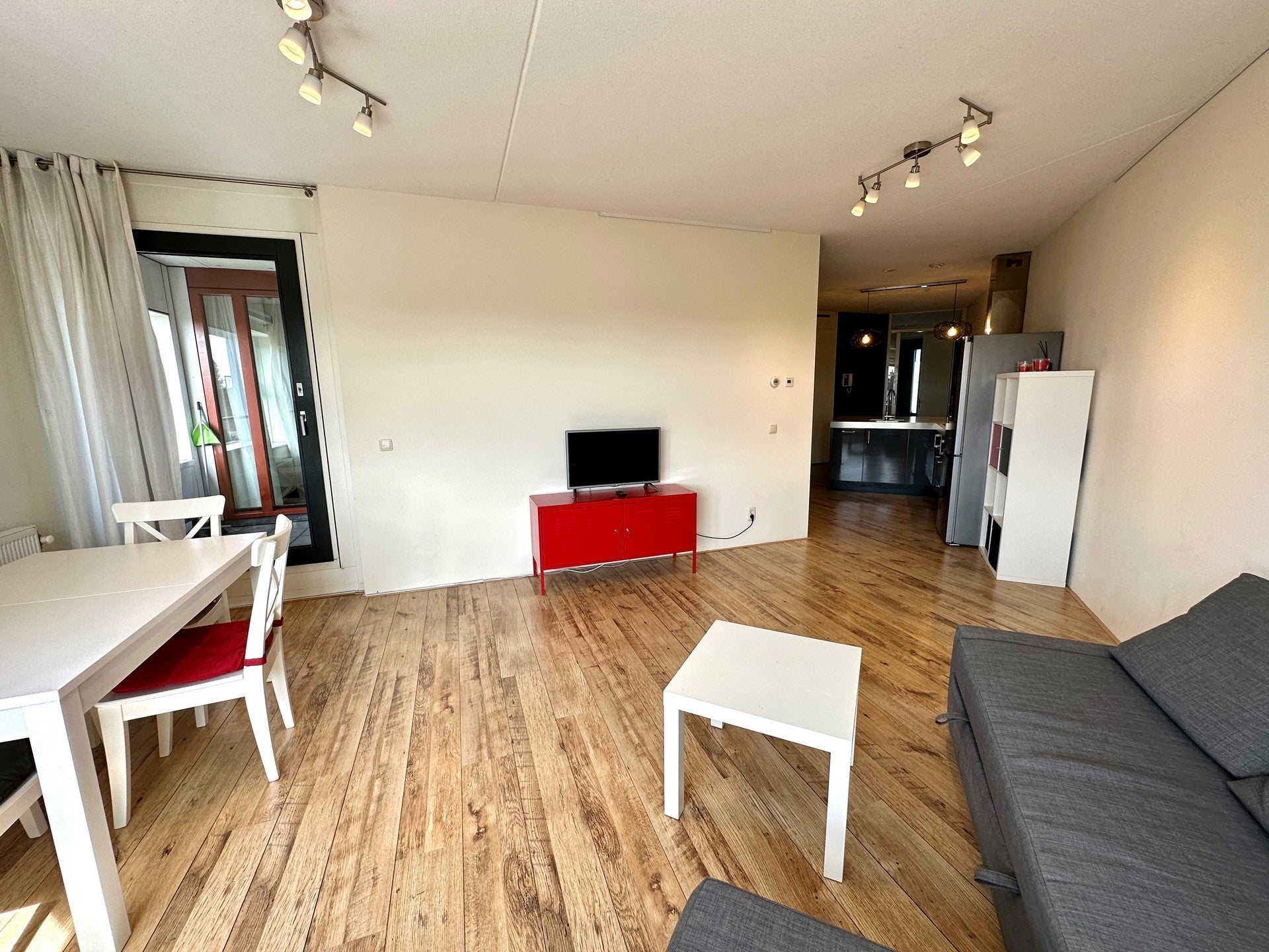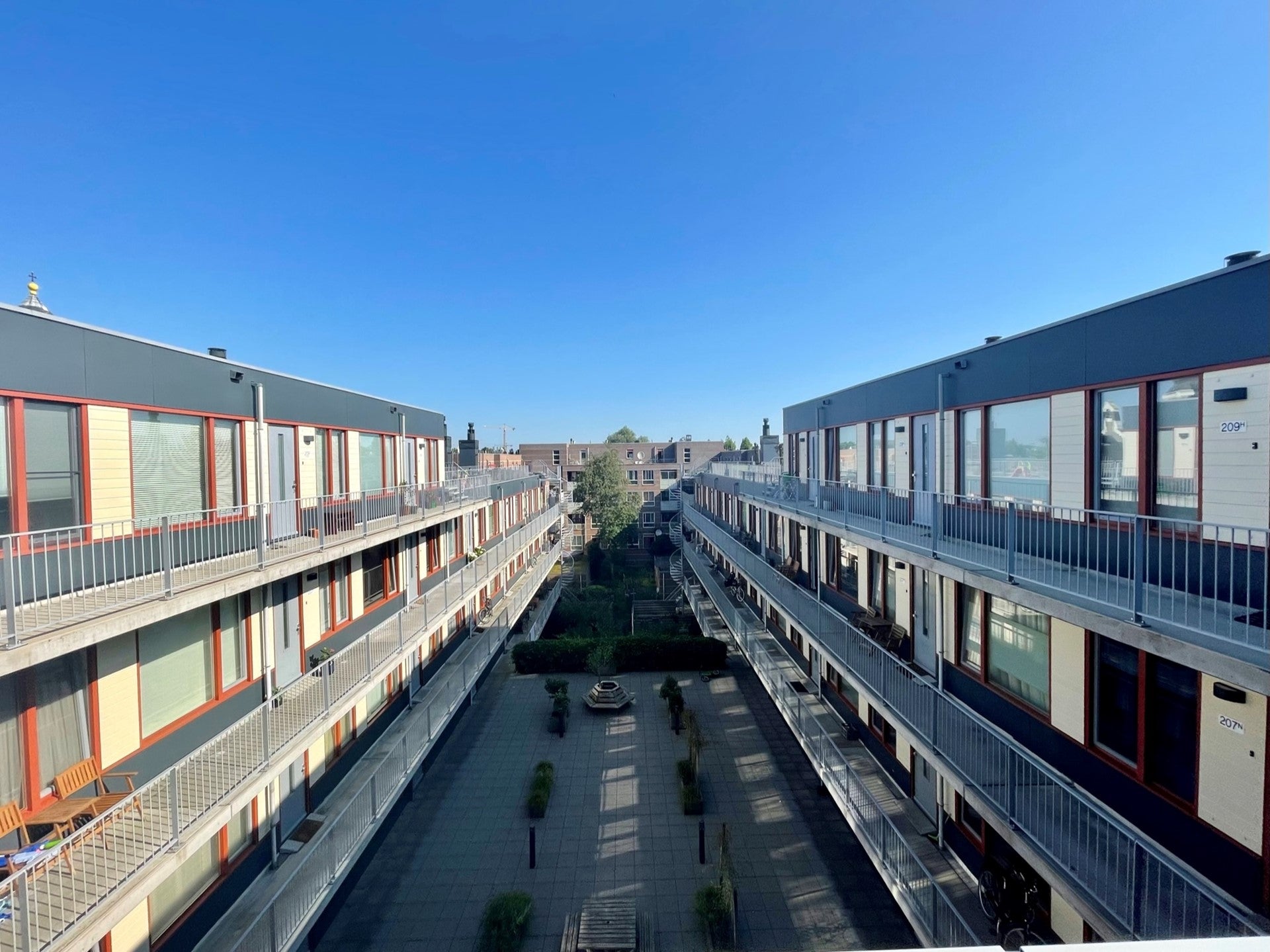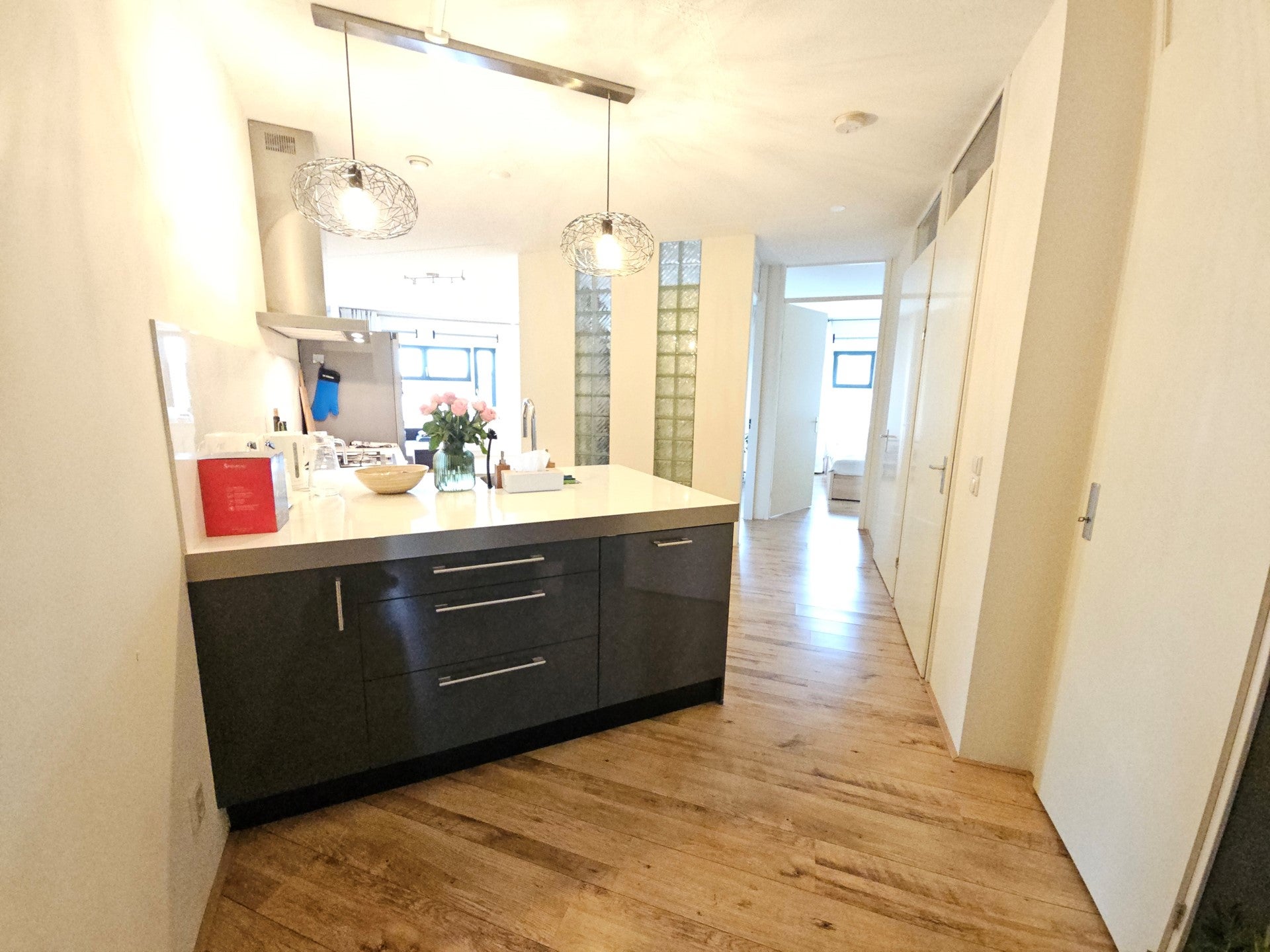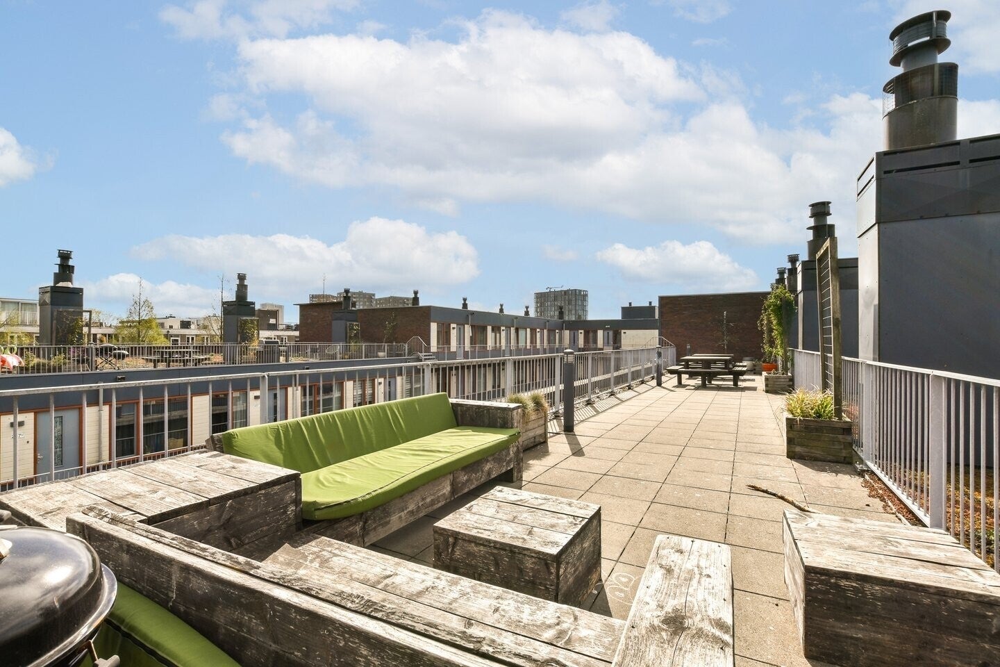 This cozy apartment is located on the fourth floor of the attractive "Tidore" complex, built in 2007. Spanning approximately 70 m², it features 3 rooms, including 2 bedrooms. The property has a southwest-facing balcony, access to two communal roof terraces, and a courtyard. It includes a stylish open kitchen equipped with appliances like a dishwasher and oven. The bathroom has a shower and washbasin with storage. There is also an indoor storage room and a balcony. The rent of €2,575 per month includes a private parking space and storage in the garage. The Indische Buurt is popular and offers various amenities within walking distance, such as Flevopark, cafes, and restaurants.