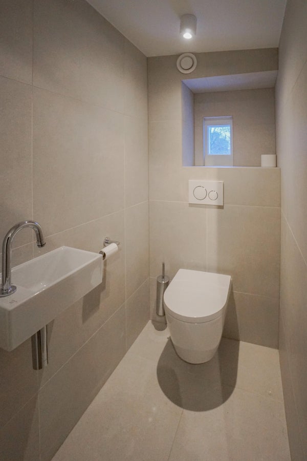 First floor: Living, fully equipped modern open kitchen, separate toilet, storage cabinet and spacious roof terrace.