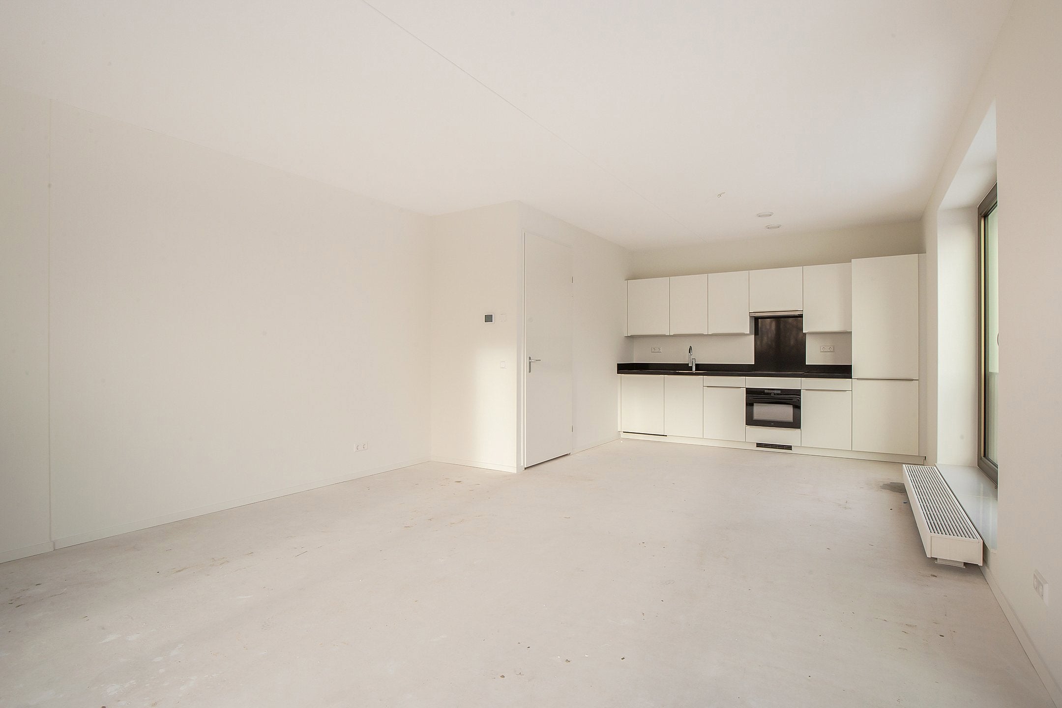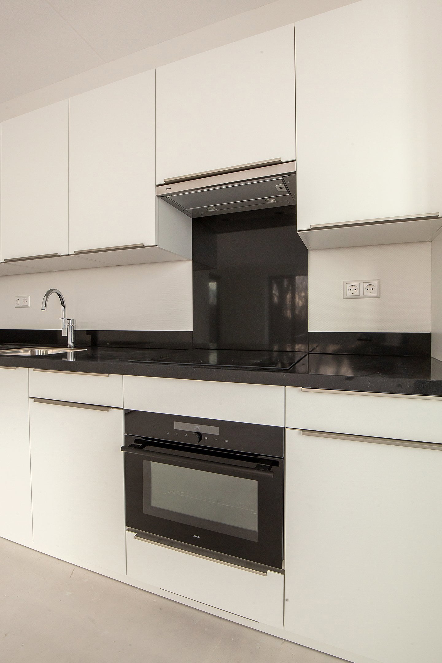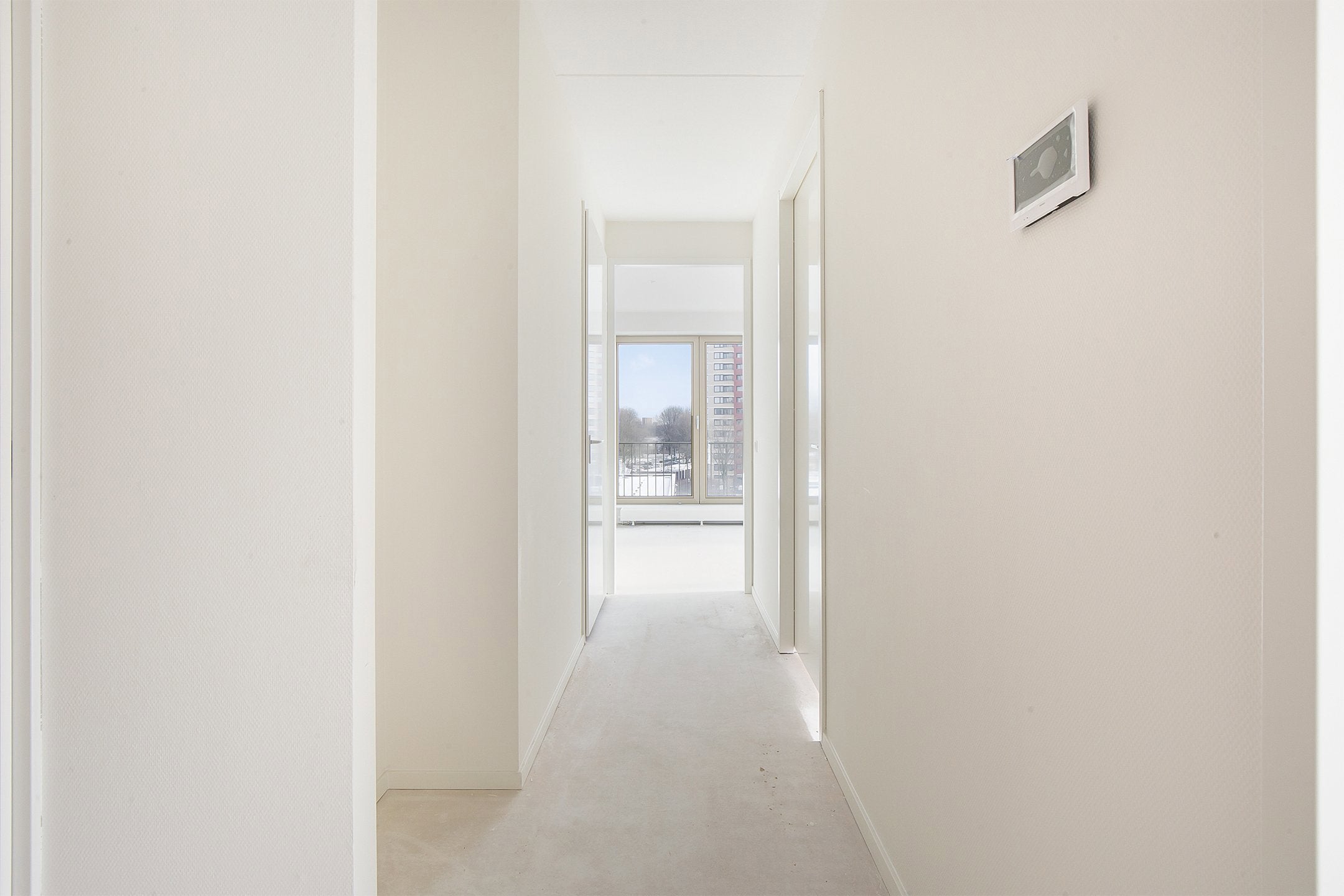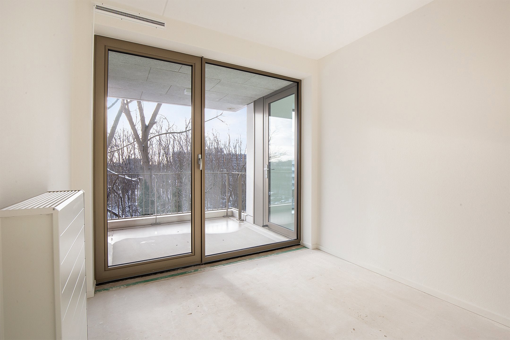 This spacious gas-free 3-room corner apartment on the 4th floor of a beautiful apartment complex offers a lovely view of greenery and features a sunny balcony. Upon entering, the spacious layout is noticeable, providing access from the hall to the toilet, storage room, bathroom, two bedrooms, and living room. The fully tiled bathroom includes a large sink and shower. The master bedroom of 14 m² has access to the balcony, while the second bedroom can serve as a workspace. The living room overlooks the modern open kitchen with built-in appliances. The apartment includes a mandatory parking space in the underground garage. Available for €1925 per month, including service costs of €85 and a parking fee of €129 per month. The energy label is A+++ and heating is via district heating.