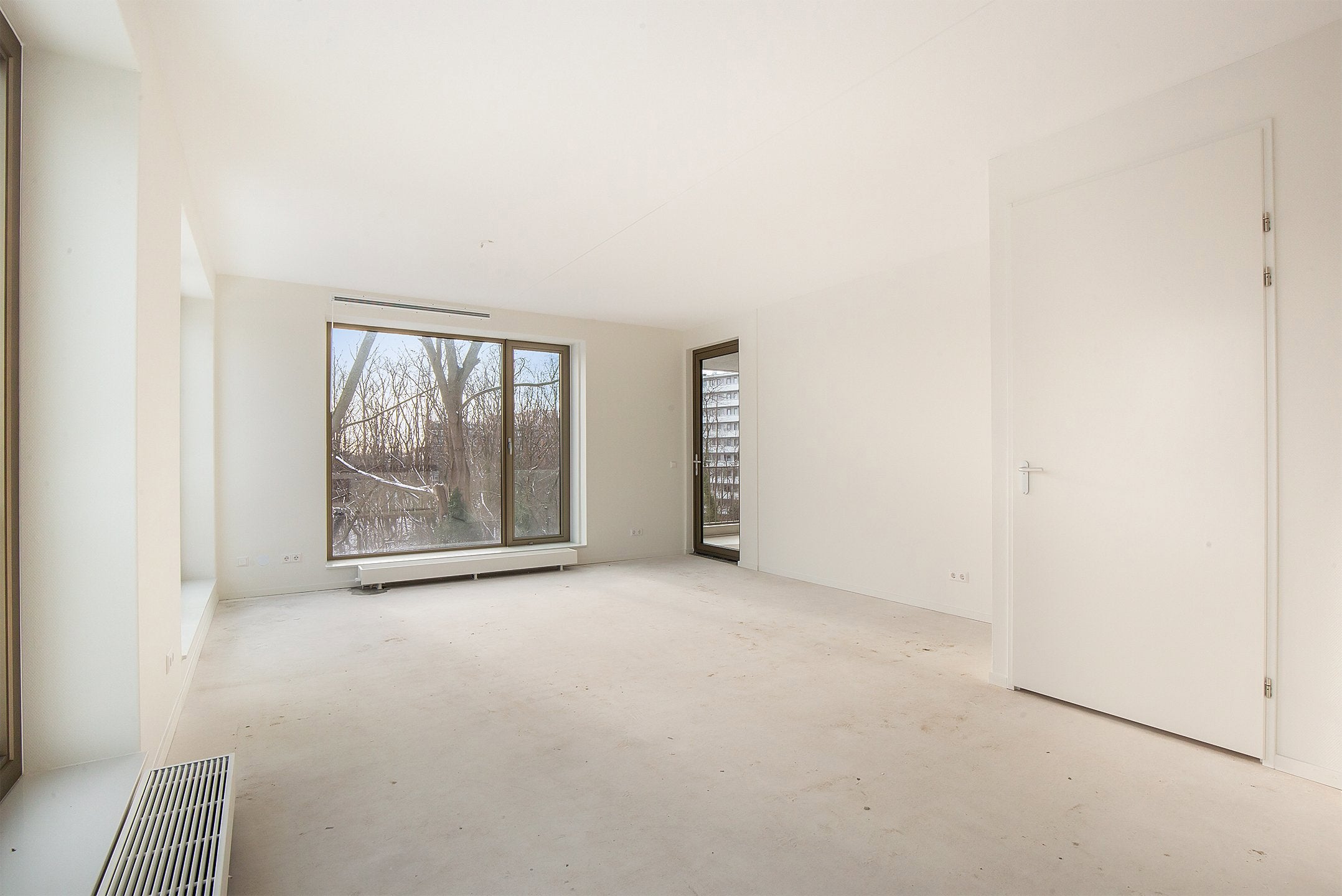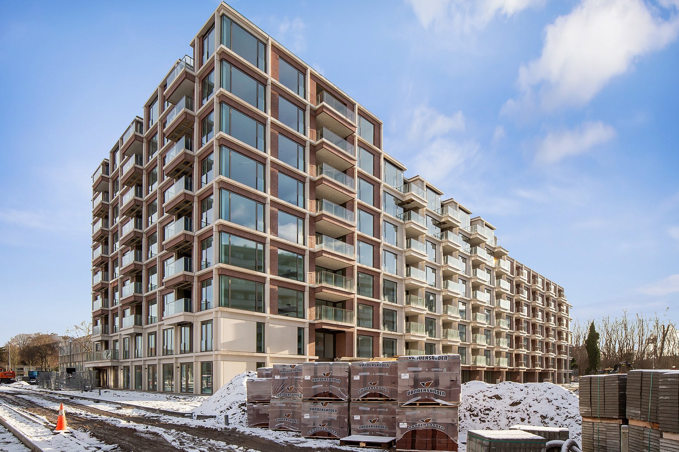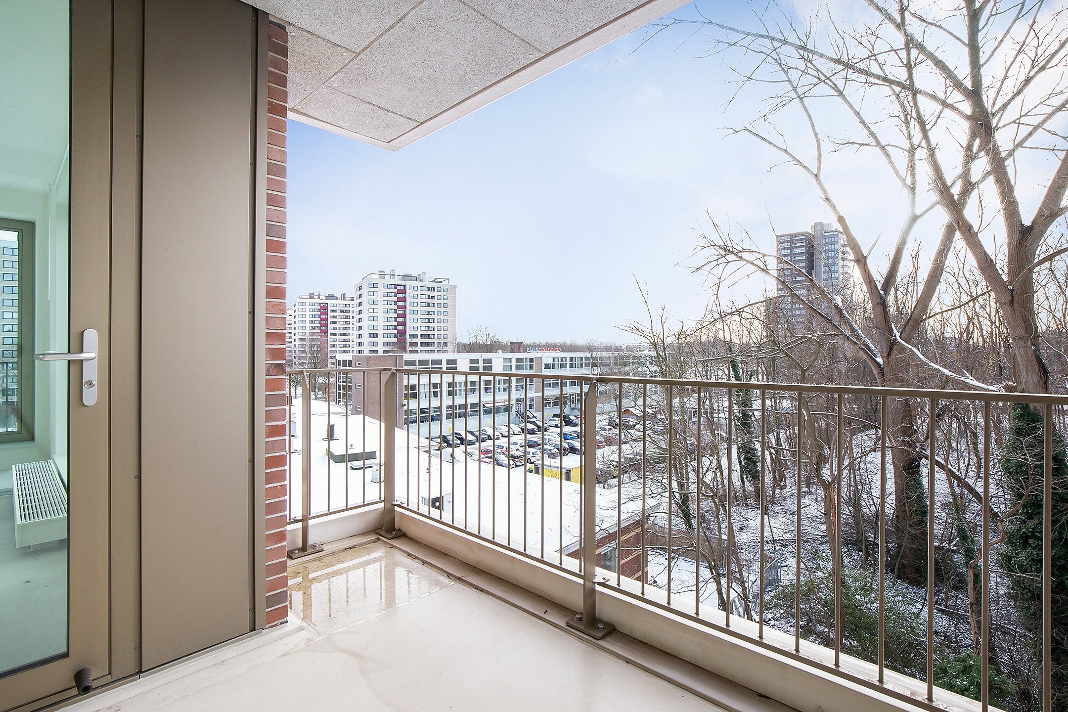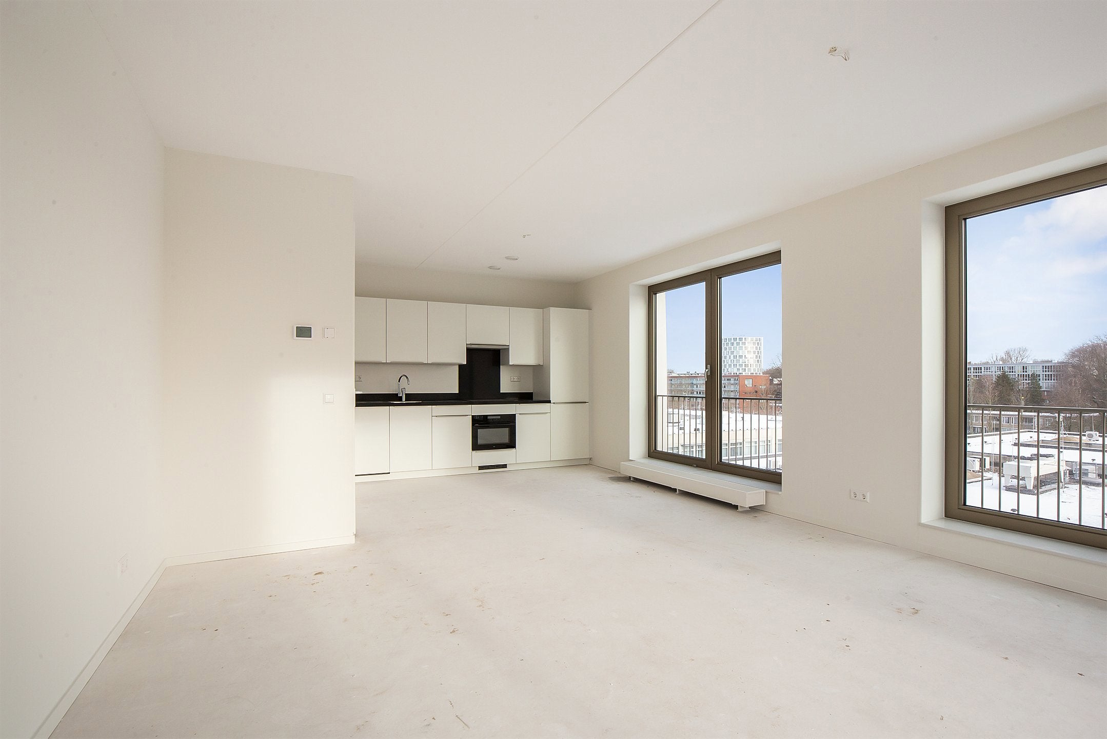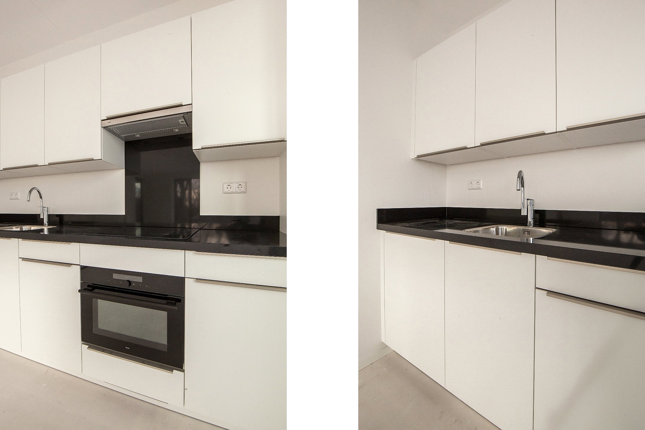 This spacious gas-free 3-room corner apartment on the 4th floor of a beautiful apartment complex offers a lovely view of greenery and features a sunny balcony. Upon entering, the spacious layout is noticeable, providing access from the hall to the toilet, storage room, bathroom, two bedrooms, and living room. The fully tiled bathroom includes a large sink and shower. The master bedroom of 14 m² has access to the balcony, while the second bedroom can serve as a workspace. The living room overlooks the modern open kitchen with built-in appliances. The apartment includes a mandatory parking space in the underground garage. Available for €1925 per month, including service costs of €85 and a parking fee of €129 per month. The energy label is A+++ and heating is via district heating.
