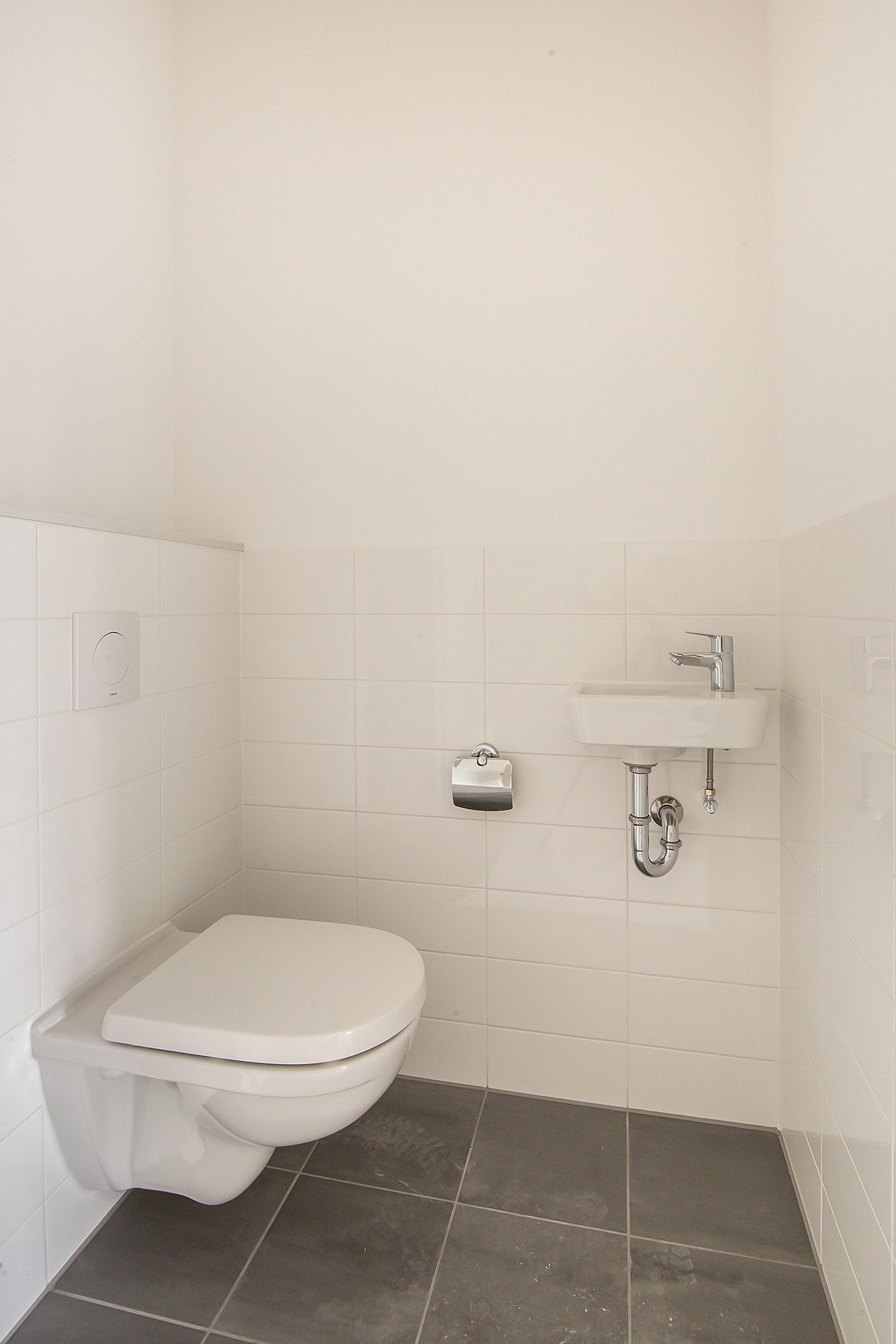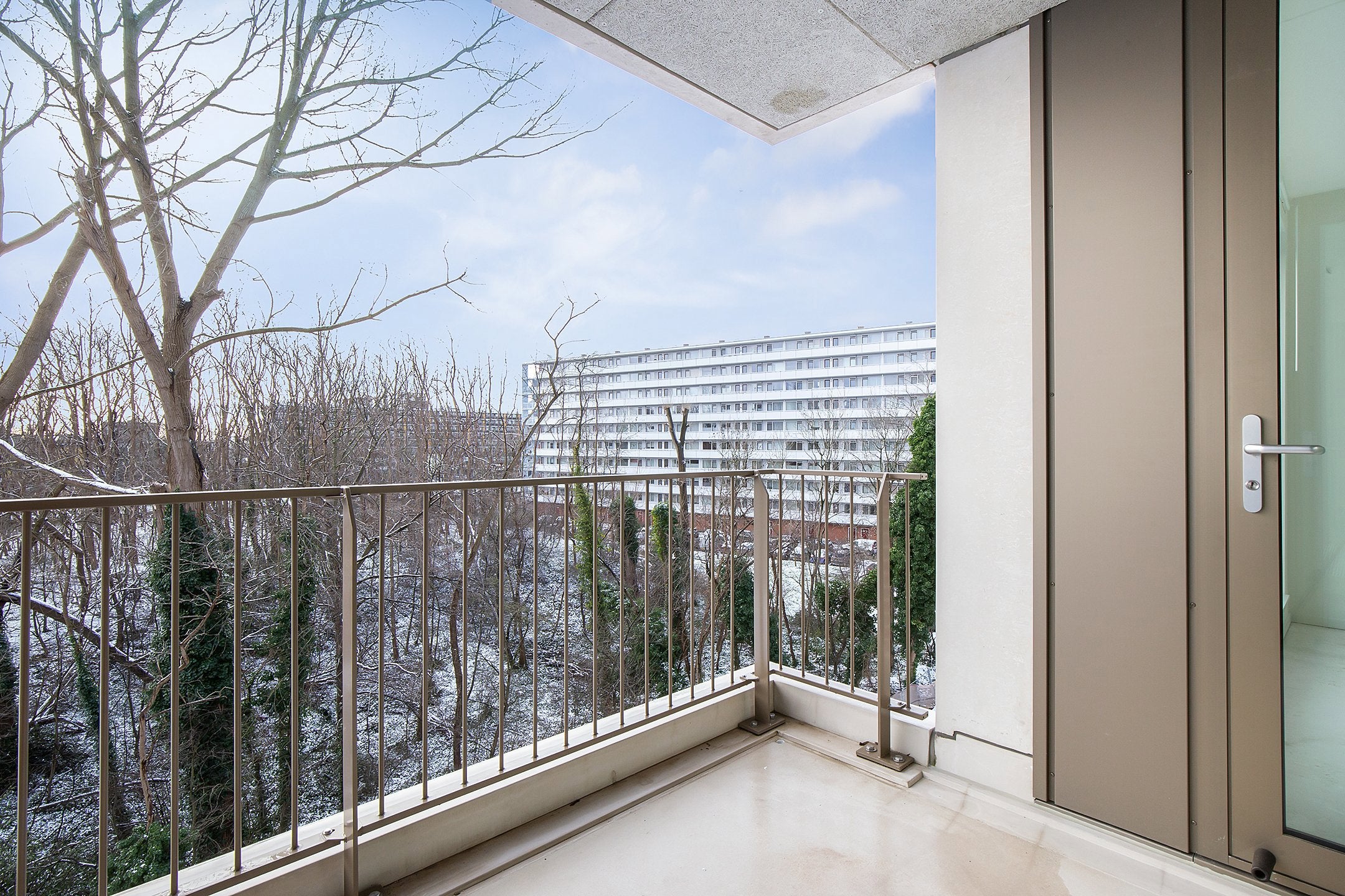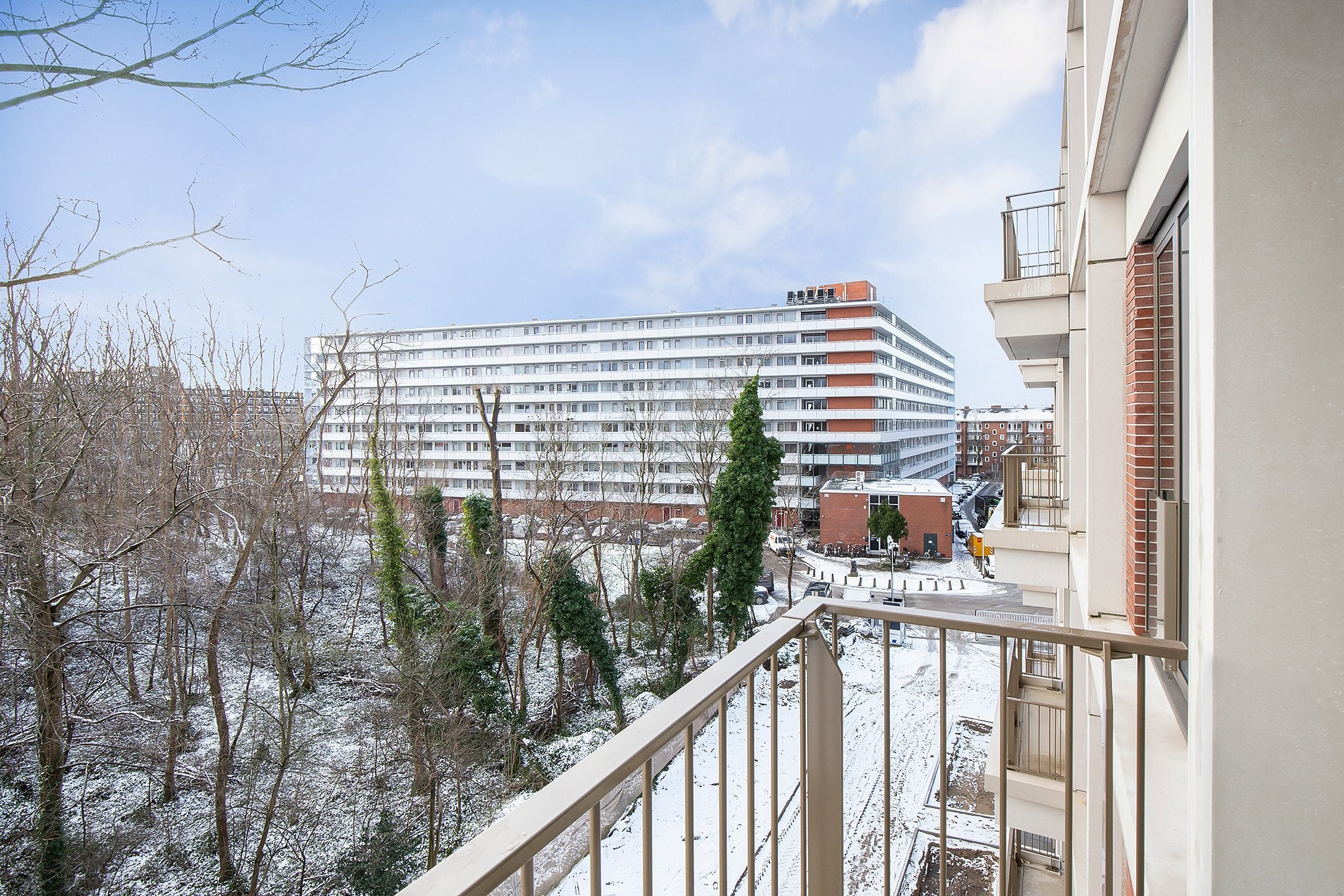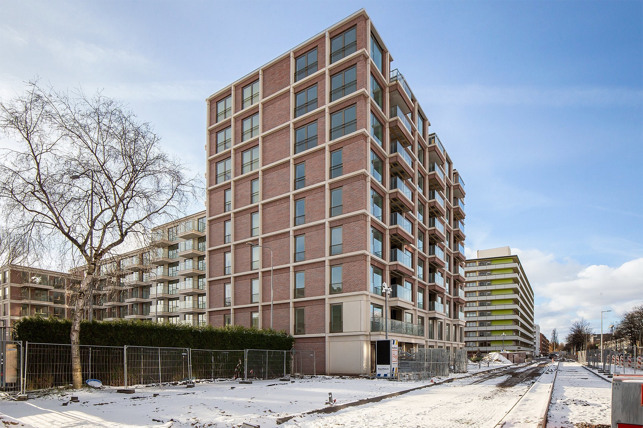This spacious gas-free 3-room corner apartment on the 4th floor of a beautiful apartment complex offers a lovely view of greenery and features a sunny balcony. Upon entering, the spacious layout is noticeable, providing access from the hall to the toilet, storage room, bathroom, two bedrooms, and living room. The fully tiled bathroom includes a large sink and shower. The master bedroom of 14 m² has access to the balcony, while the second bedroom can serve as a workspace. The living room overlooks the modern open kitchen with built-in appliances. The apartment includes a mandatory parking space in the underground garage. Available for €1925 per month, including service costs of €85 and a parking fee of €129 per month. The energy label is A+++ and heating is via district heating.