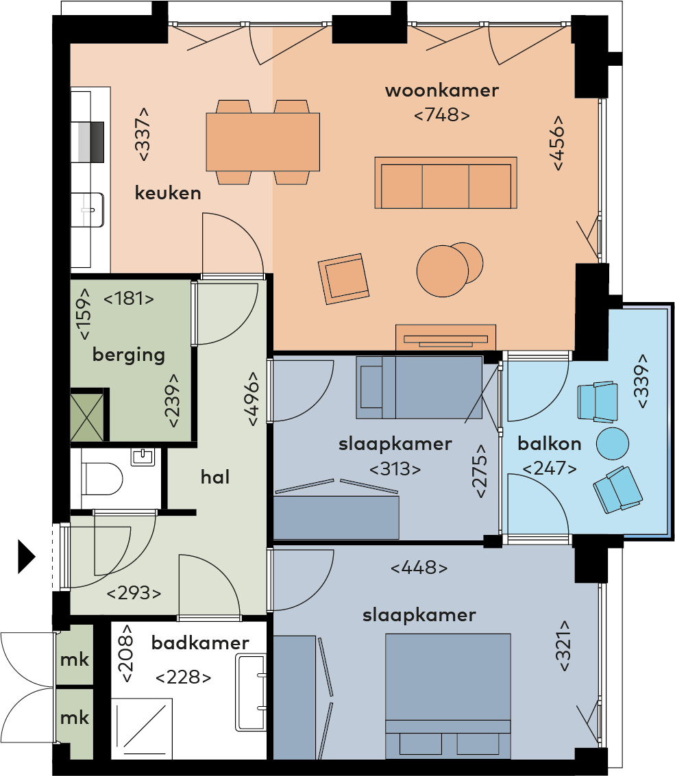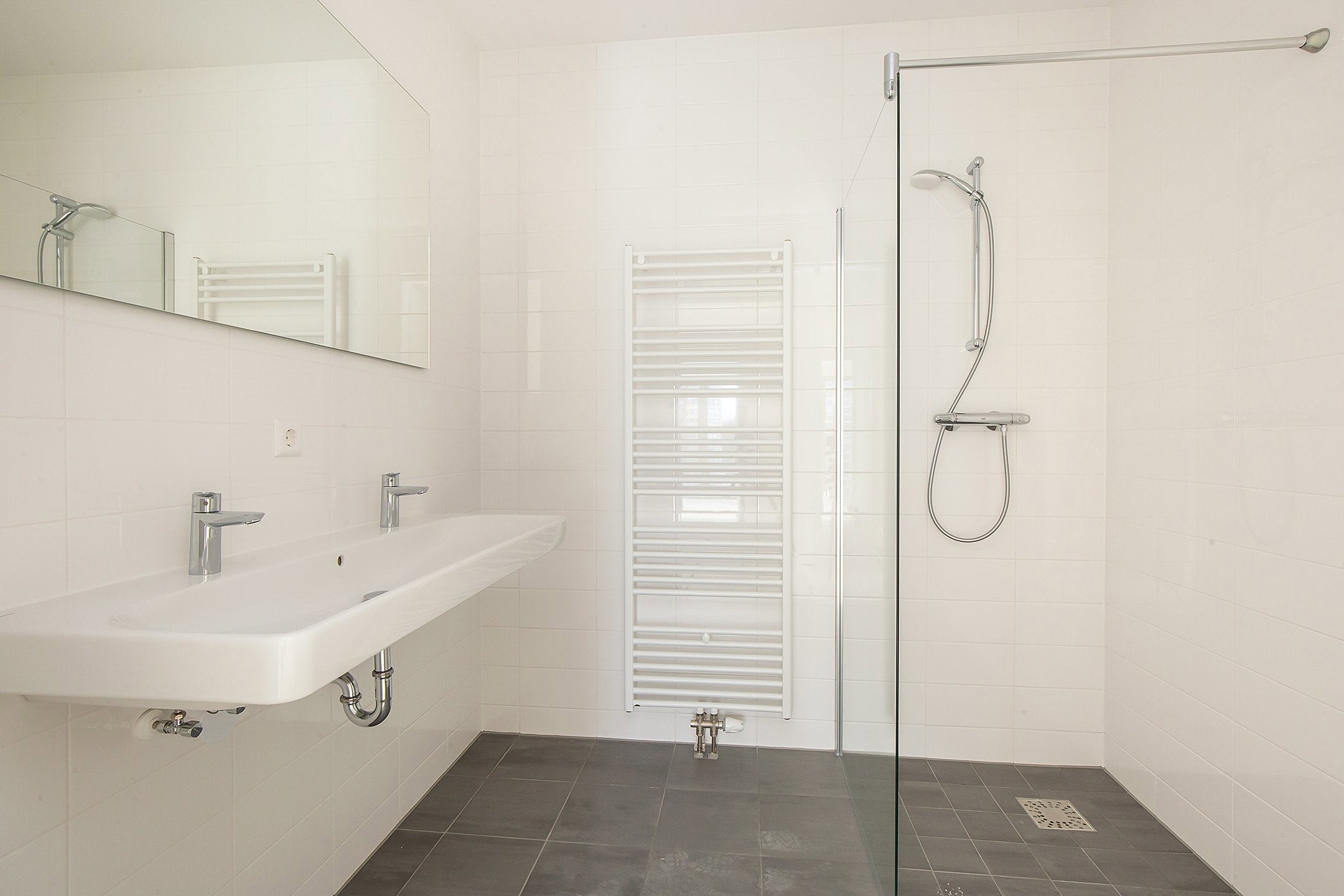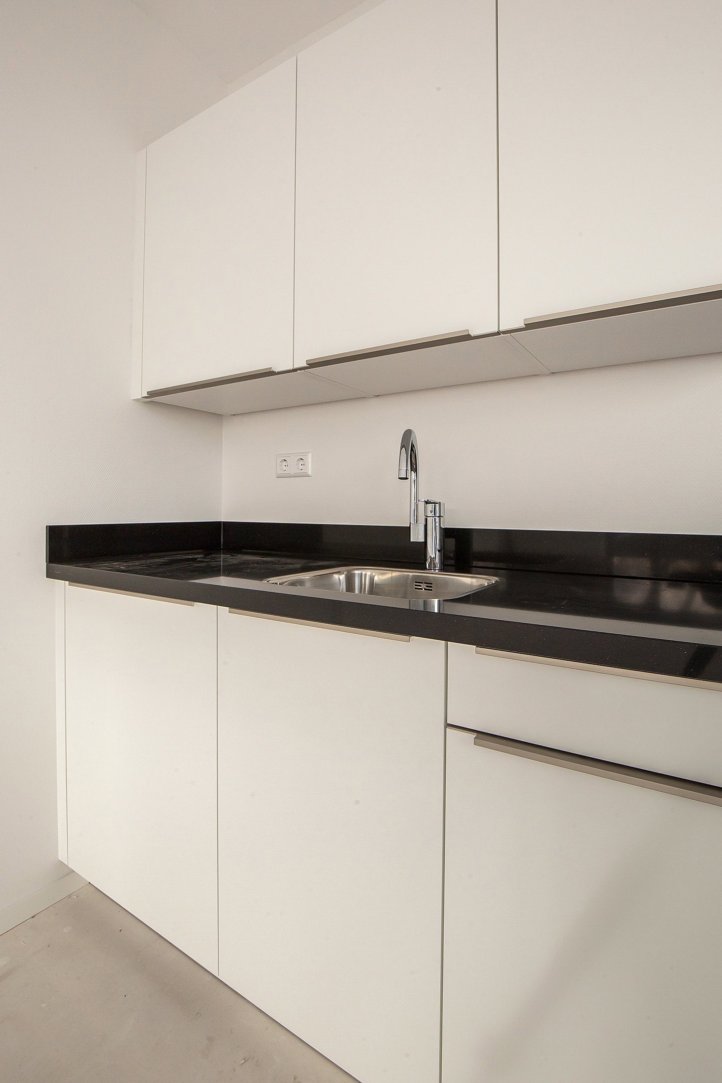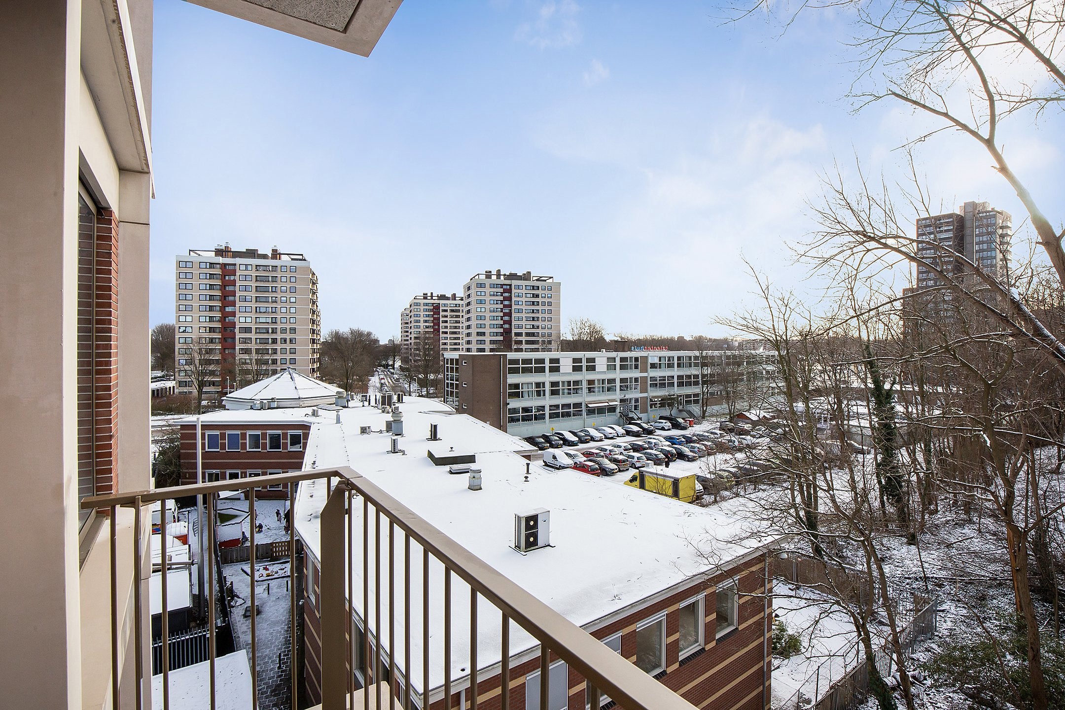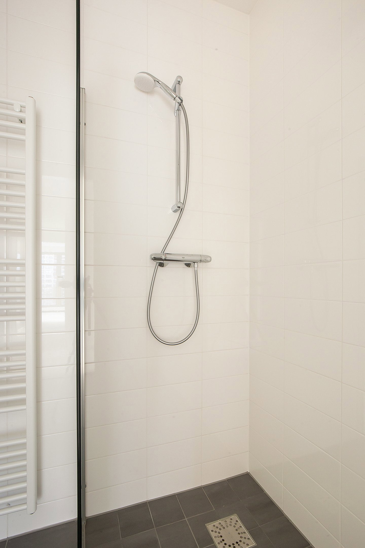 This spacious gas-free 3-room corner apartment on the 4th floor of a beautiful apartment complex offers a lovely view of greenery and features a sunny balcony. Upon entering, the spacious layout is noticeable, providing access from the hall to the toilet, storage room, bathroom, two bedrooms, and living room. The fully tiled bathroom includes a large sink and shower. The master bedroom of 14 m² has access to the balcony, while the second bedroom can serve as a workspace. The living room overlooks the modern open kitchen with built-in appliances. The apartment includes a mandatory parking space in the underground garage. Available for €1925 per month, including service costs of €85 and a parking fee of €129 per month. The energy label is A+++ and heating is via district heating.